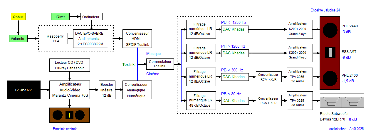 Voici le synoptique de mon installation en Bretagne (j'ai un autre système purement audio en région parisienne)