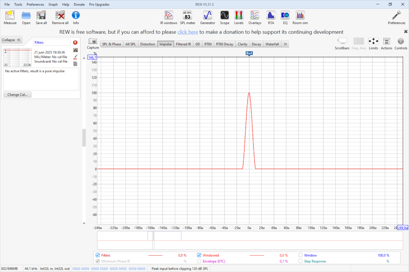 Je pensais bêtement qu'avec la trouvaille de Mystère Thévenot, le fameux spectrogramme, j'allais enfin pouvoir visualiser à la fois l'amplitude et le délai de groupe au point d'écoute, avec une seule mesure, et ensuite corriger les non linéarités. Comme lui quoi. Car c'est comme ça qu'il fait. Et qu'en plus, j'allais enfin éviter l'étape de conception en pseudo chambre sourde. Et partir des spectrogrammes de chaque haut-parleur pour les associer avec un filtre brick wall et faire en sorte d'obtenir tout droit au point d'écoute : amplitude, délai de groupe (surtout à la fréquence de coupure et aux alentours) en jouant sur le délai au besoin.