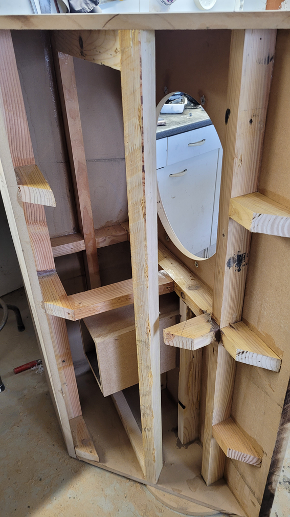 Le bois démonté de la structure du traitement arrière a été utilisé pour les renforts des caissons (après rabotage).