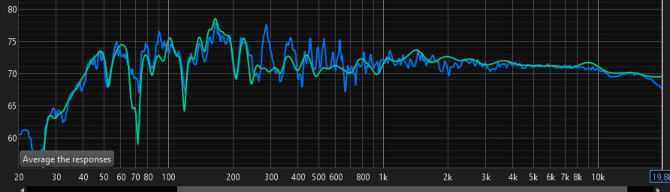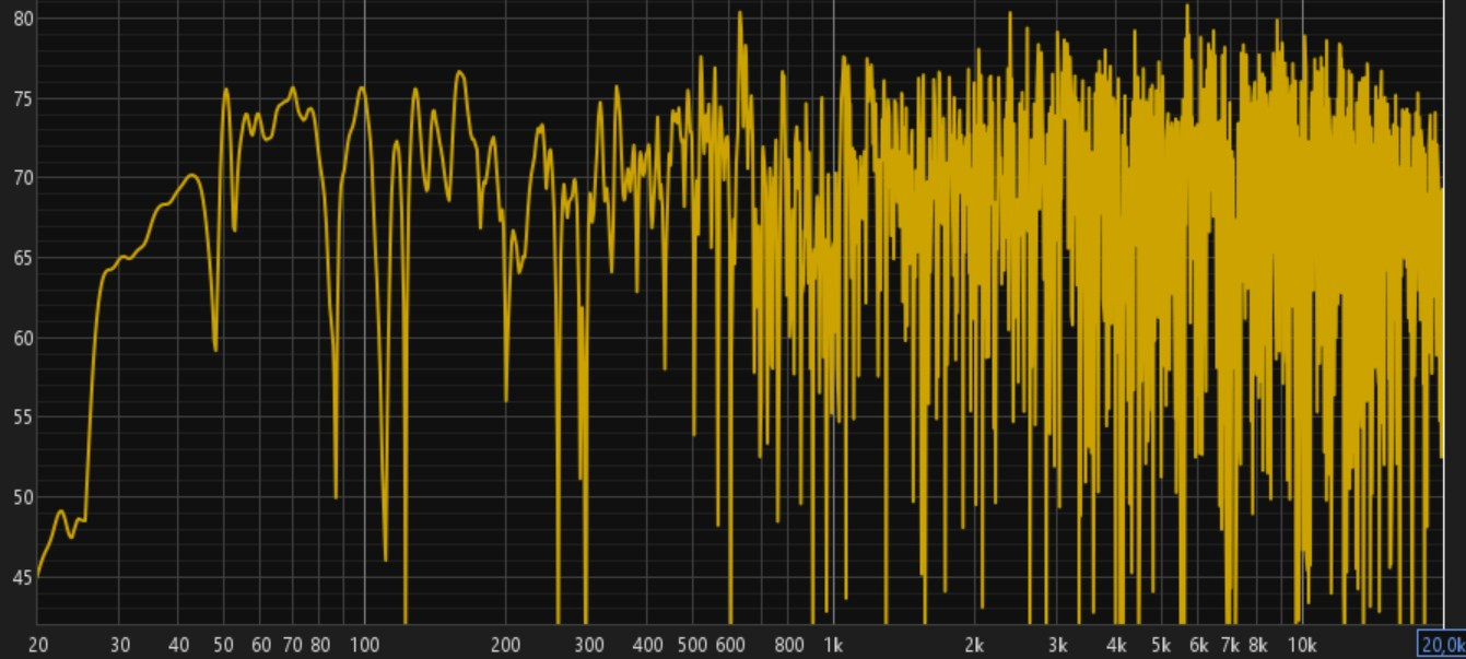 Je pense que ce sont les réflexions dans la pièce qui se font de manière désordonnée. Il faut garder à l'esprit que la vraie courbe de réponse au point d'écoute, sans aucun lissage artificiel, c'est ça :