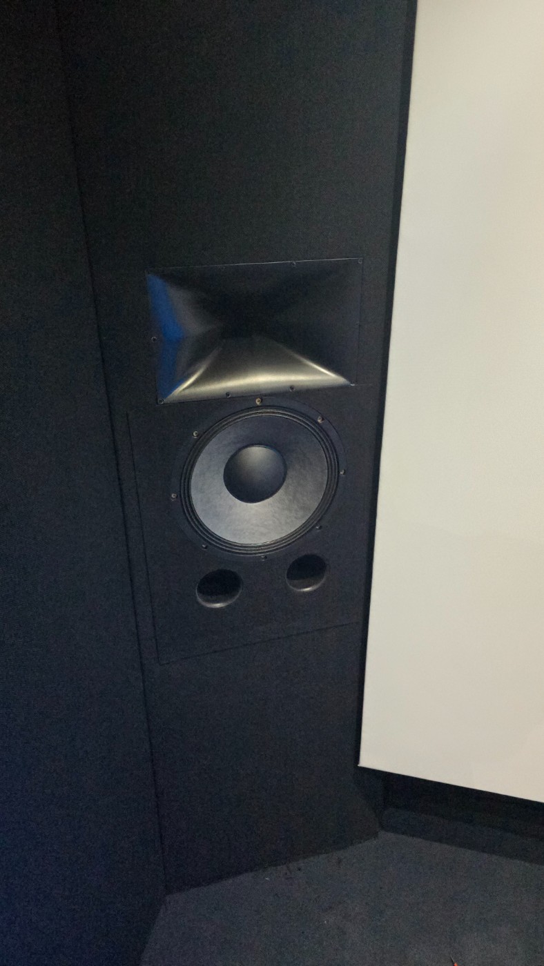 Le format cible pour la configuration de la salle est le Dolby Atmos 9.1.4, la scène frontale en filtrage actif via un DME64N et les enceintes d'ambiances sont elles en filtrage passif.