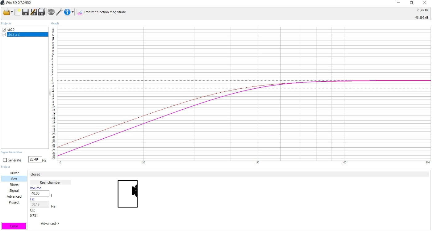 Les SB23 seront doublés pour plus de rendement et par sécurité en utilisation Home Cinéma, pas de bass management chez moi depuis plusieurs années alors les enceintes doivent descendres bas et pouvoir encaisser