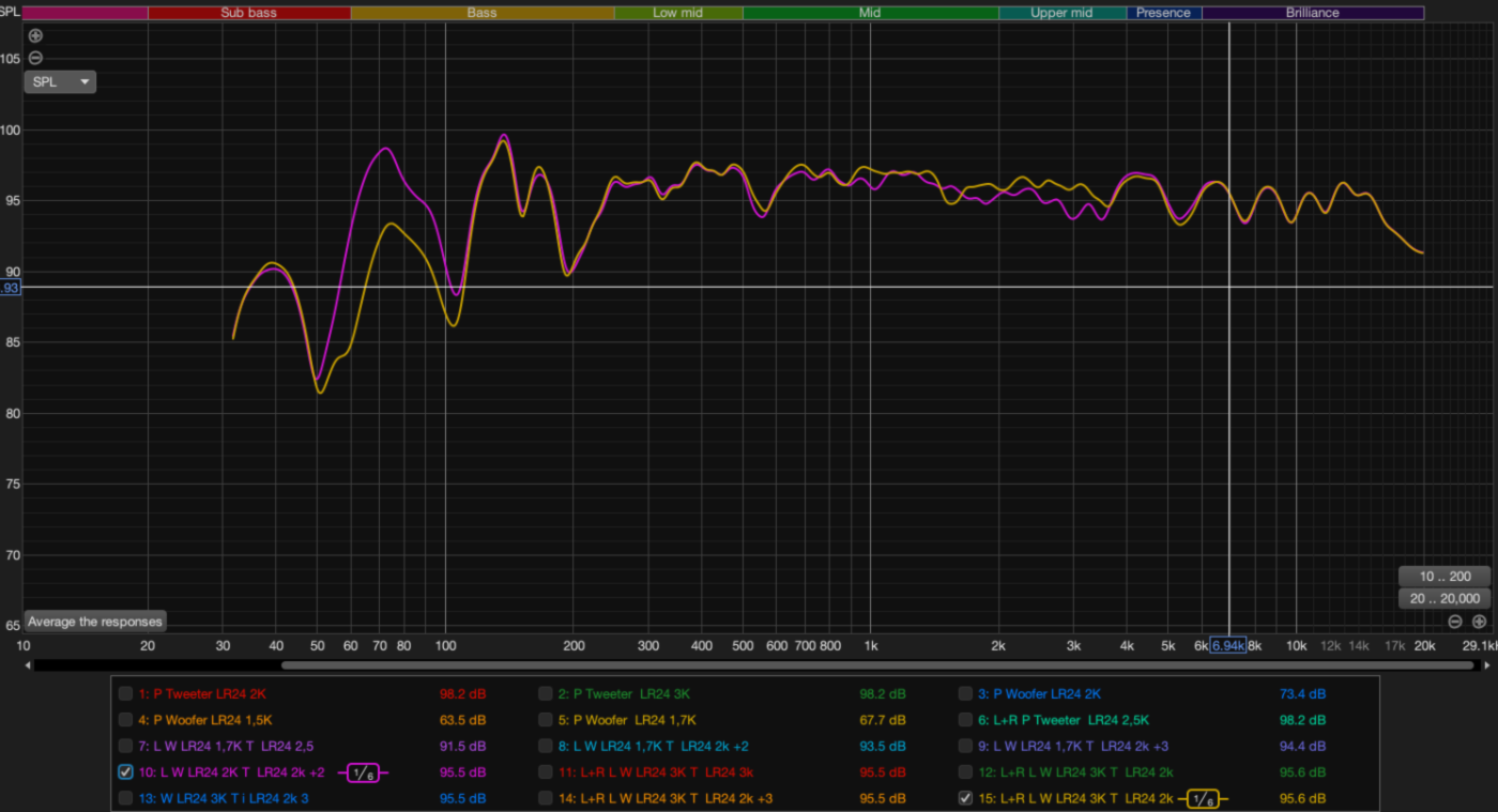 Le LR24 du woofer inversé est à 3kHz , le tweeter a 2kHz +3db (je ne sais pas pourquoi alors que le tweeter a plus de peps d'origine sur le papier)