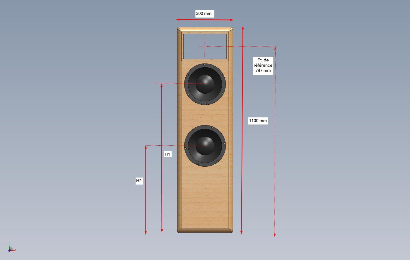 A priori h2 sera de telle sorte que l'on rapproche au max les centre acoustique compression/woofer soit 795 mm