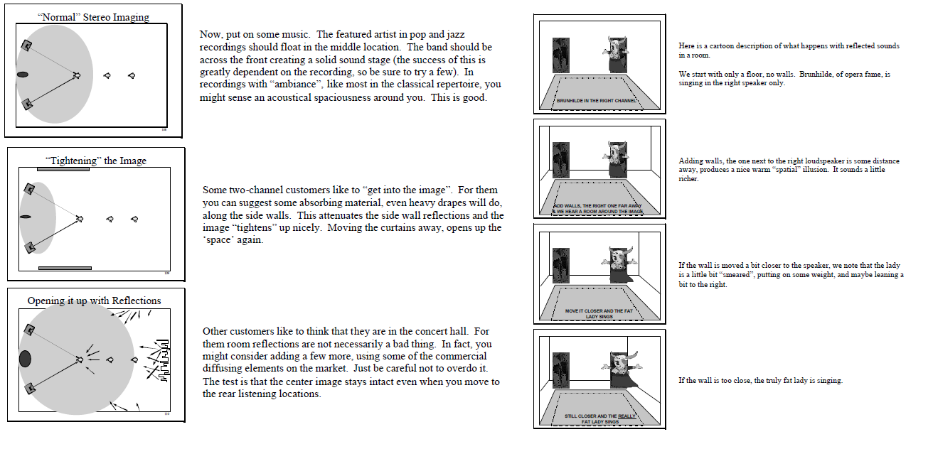 Par contre, il semble clair qu'il faut éloigner les enceintes des murs latéraux, mais pas forcement les traiter si l'on regarde le dessin "normal stéréo imaging... .