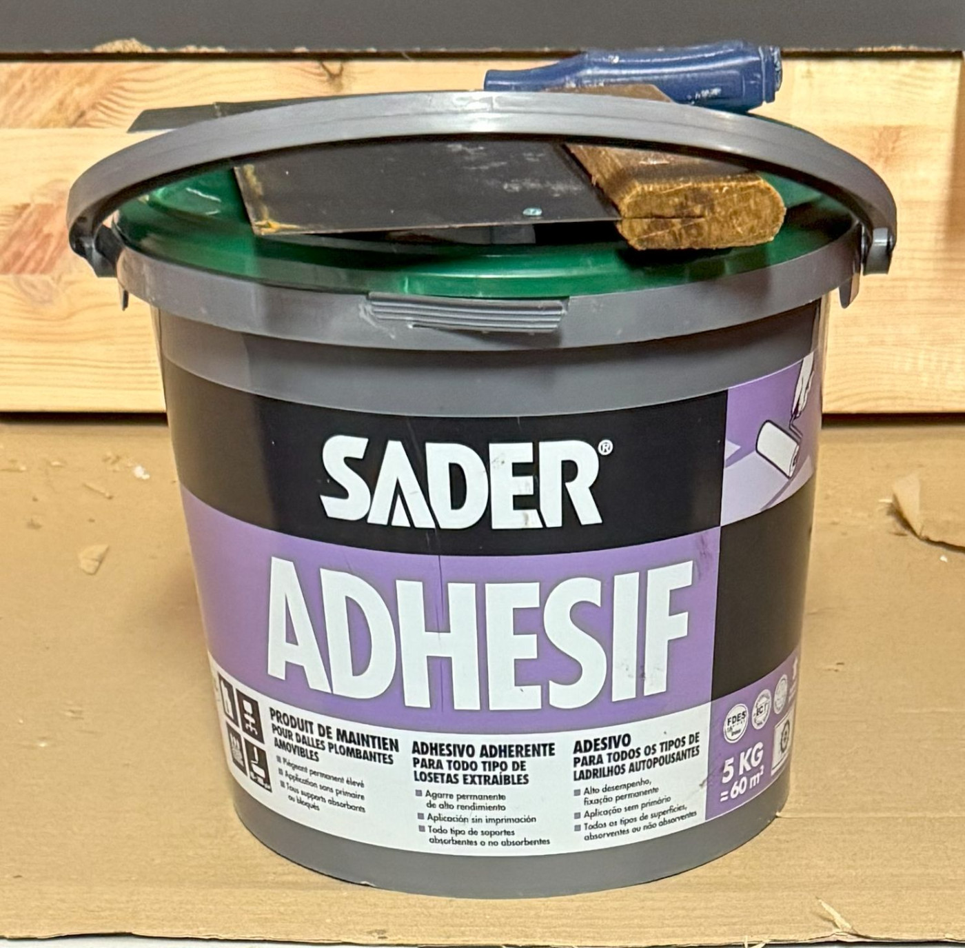 La colle repositionnable pour moquette en dalle.