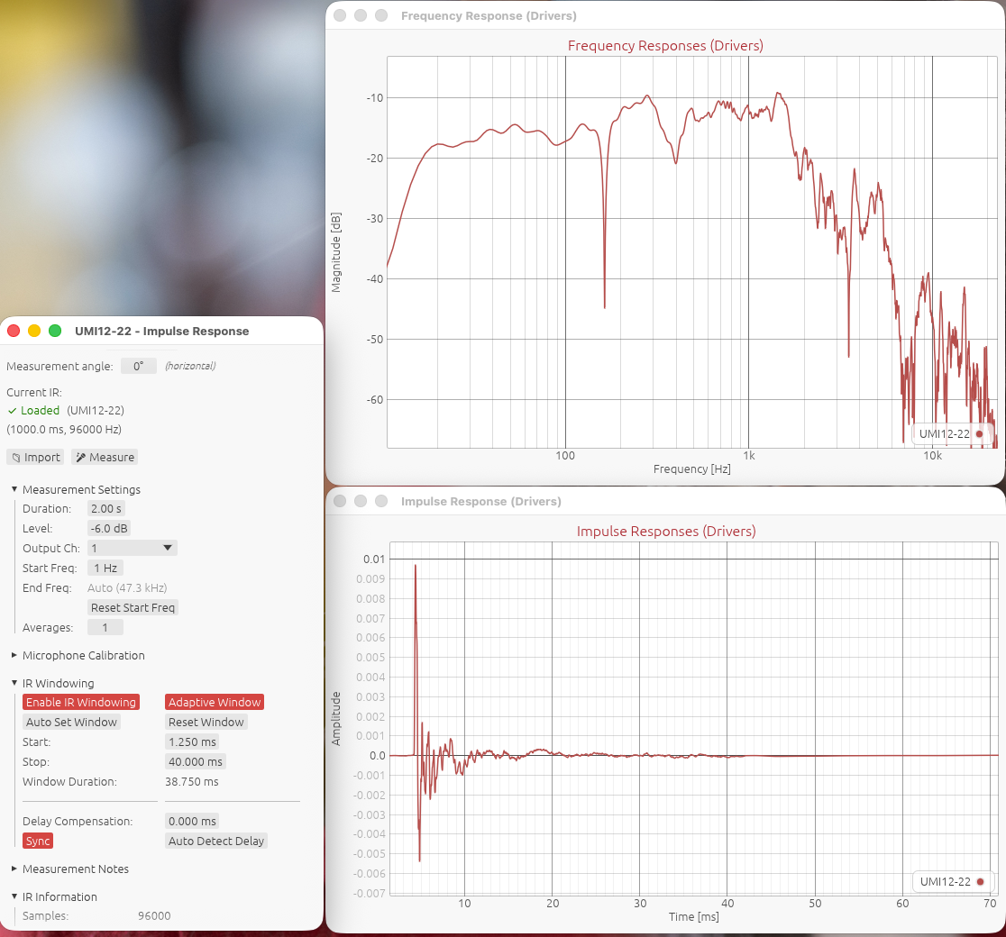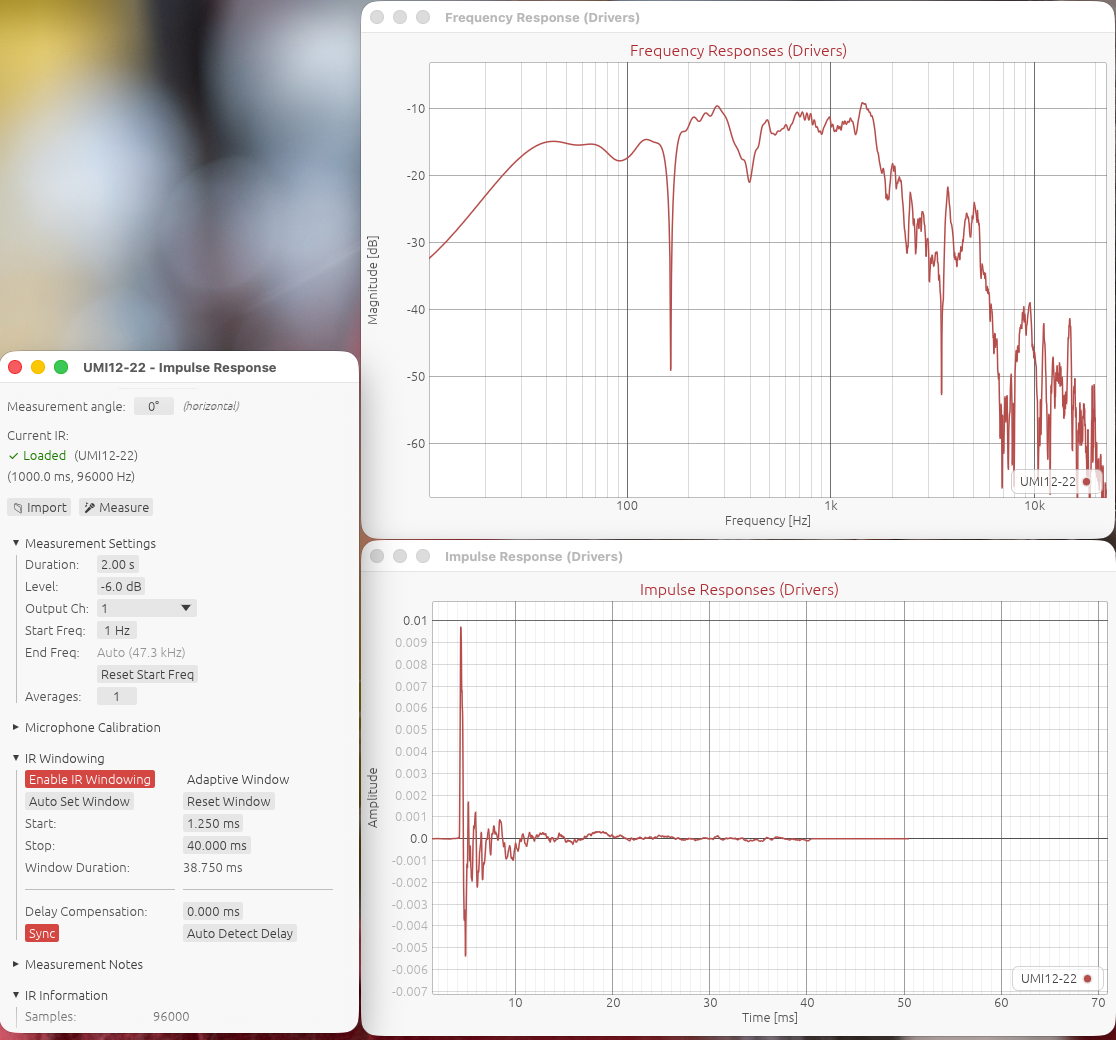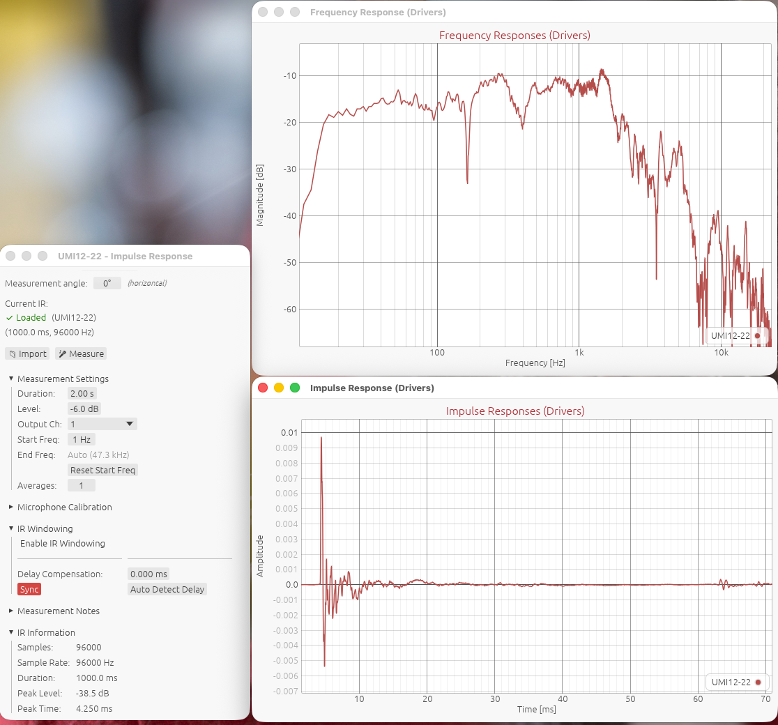Il faut un peu se méfier des fichiers FRD, ils ne contiennent pas les informations de temps de vol (la durée réelle de propagation liée à la position des moteurs et à l'inertie du système). L'idéal est d'utiliser des réponses impulsionnelles et de mesurer avec une méthode de synchronisation (loopback ou synchronisation acoustique via un chirp sur une seconde enceinte).