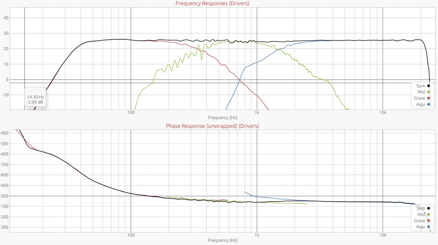 Il faut un peu se méfier des fichiers FRD, ils ne contiennent pas les informations de temps de vol (la durée réelle de propagation liée à la position des moteurs et à l'inertie du système). L'idéal est d'utiliser des réponses impulsionnelles et de mesurer avec une méthode de synchronisation (loopback ou synchronisation acoustique via un chirp sur une seconde enceinte).