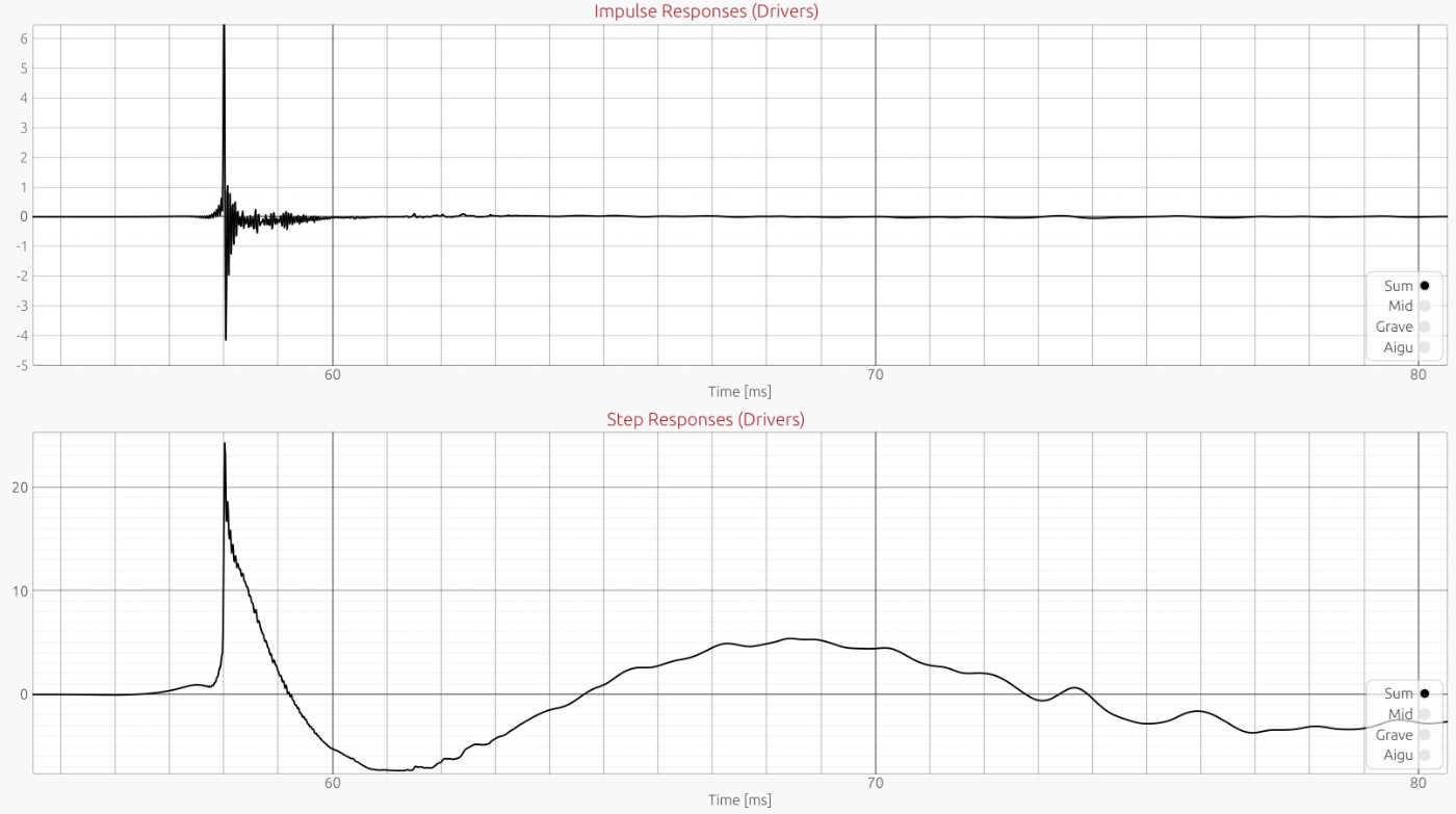D’autre part, les impulsions du grave et du mid apparaissent vers 10ms, l’impulsion d’aigu à 50ms !