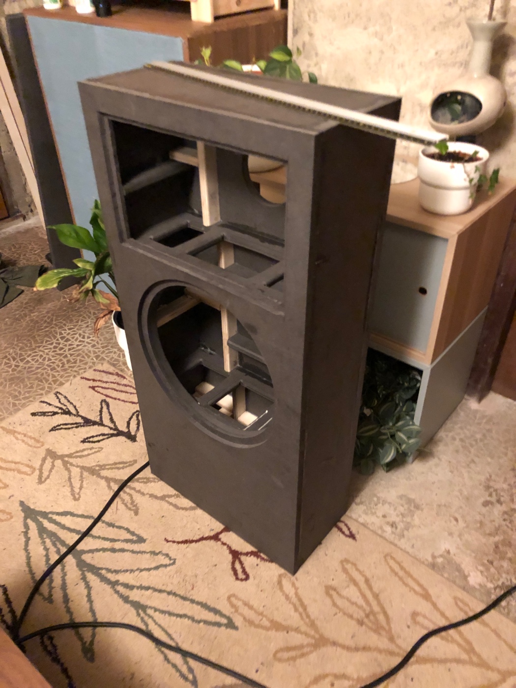 Je n’avais plus de valchromat car la livraison du reste pour la double baffle et la seconde enceinte est encore retardée, donc j’ai fini avec les chutes.