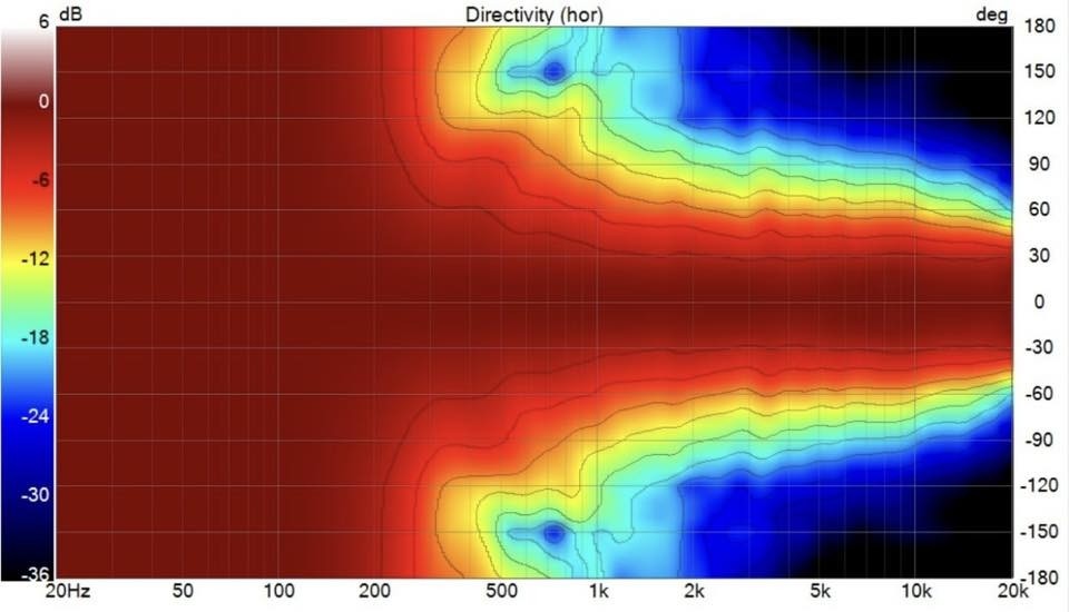 PureShape 24 (ou 23 je sais plus) + PURIFI PTT8 + retour de 3cm (d'où les polar parfaites) C'est du 4eme ordre ce qui rend la directivité moins constante par rapport a de l'actif 48db, il a eu quelque soucis avec l'effet entre la suspension du woofer et le front qui vient du WG. On voit bien une sorte d'accident jsute aprés coupure coté woofer: