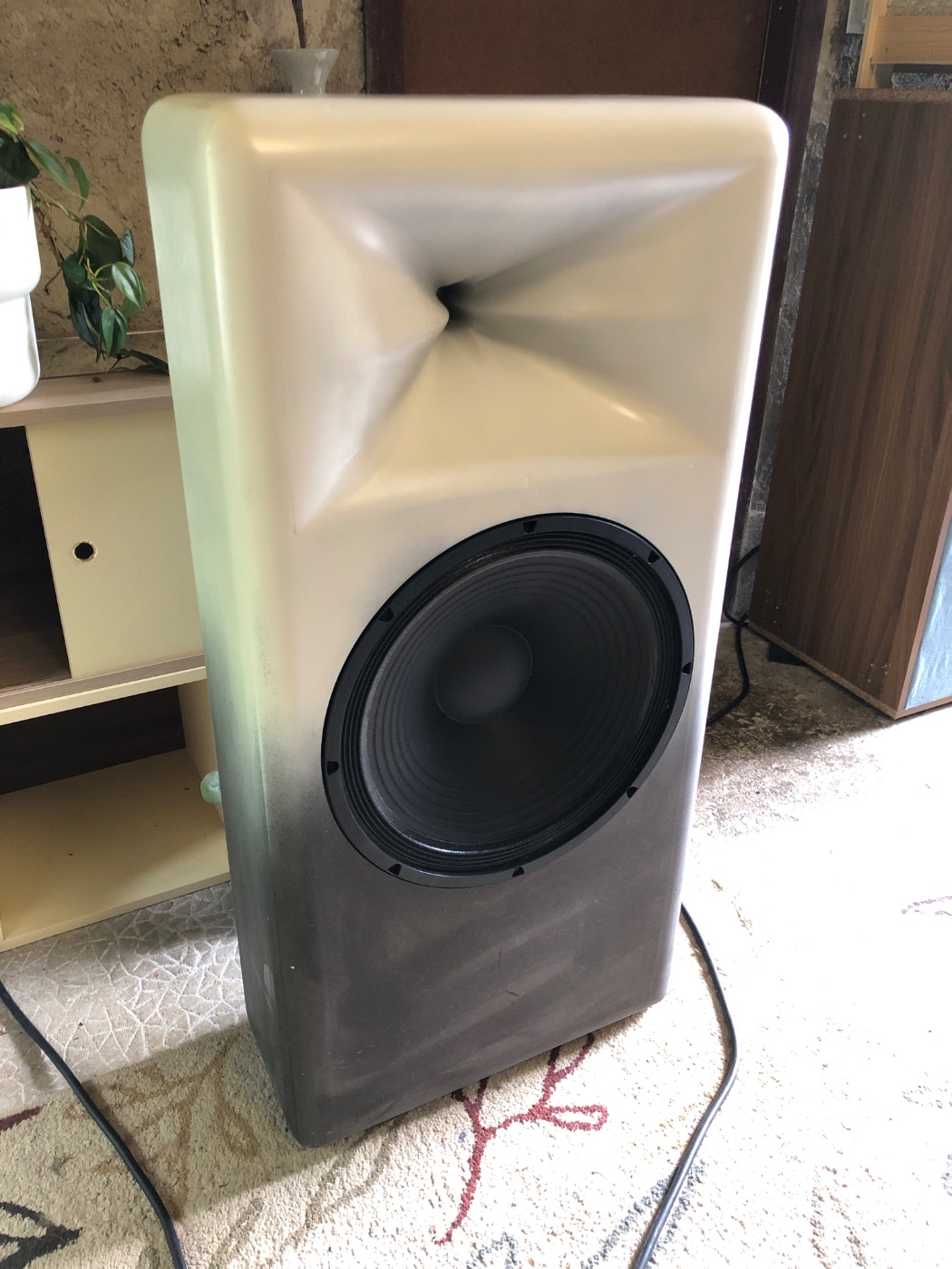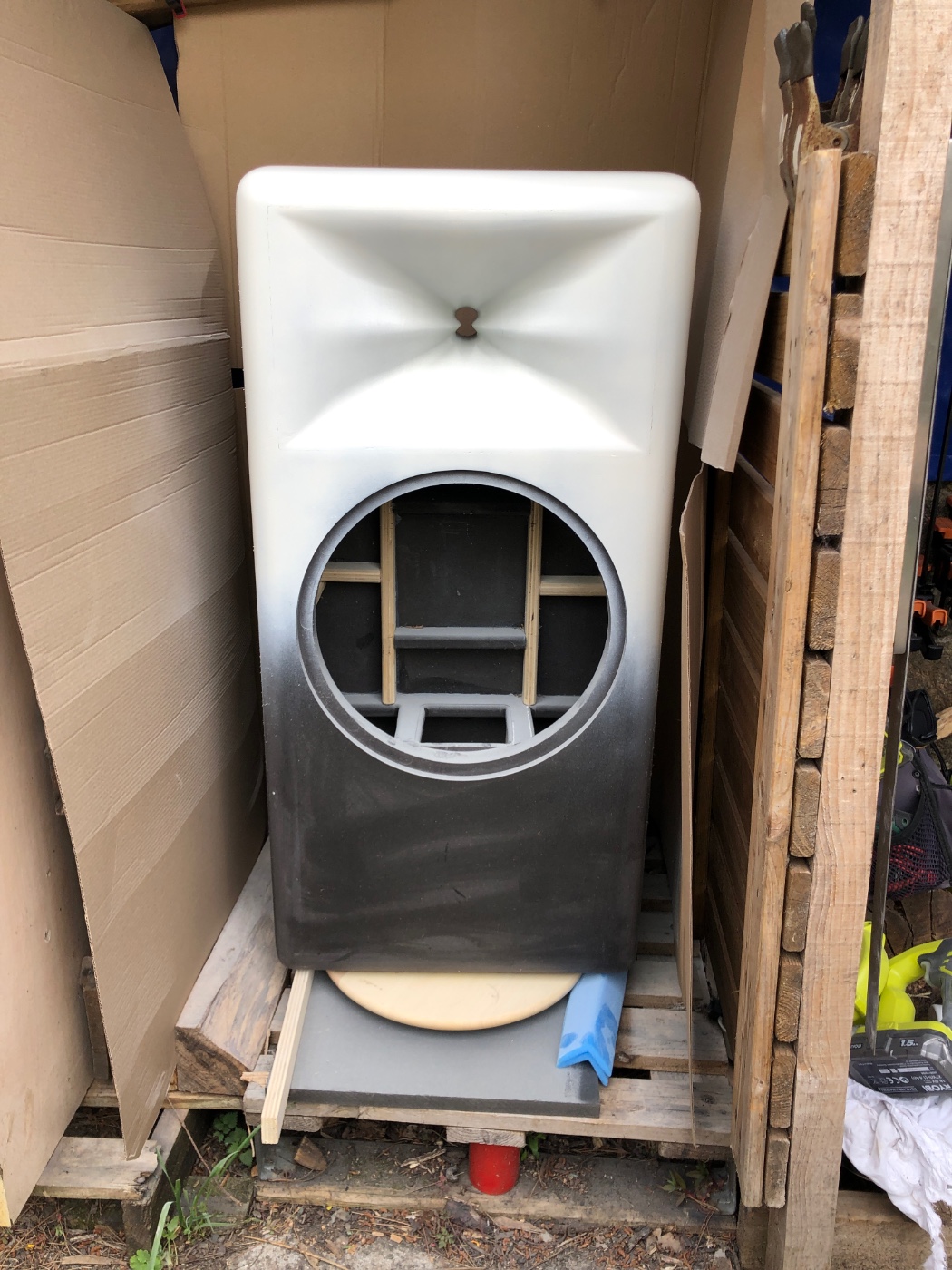 Montage rapide du hp, me manque des pieces, cables et embase mais je voulais quand meme tester l’impedance. Donc vite fait un trou et colle chaude pour les fils.