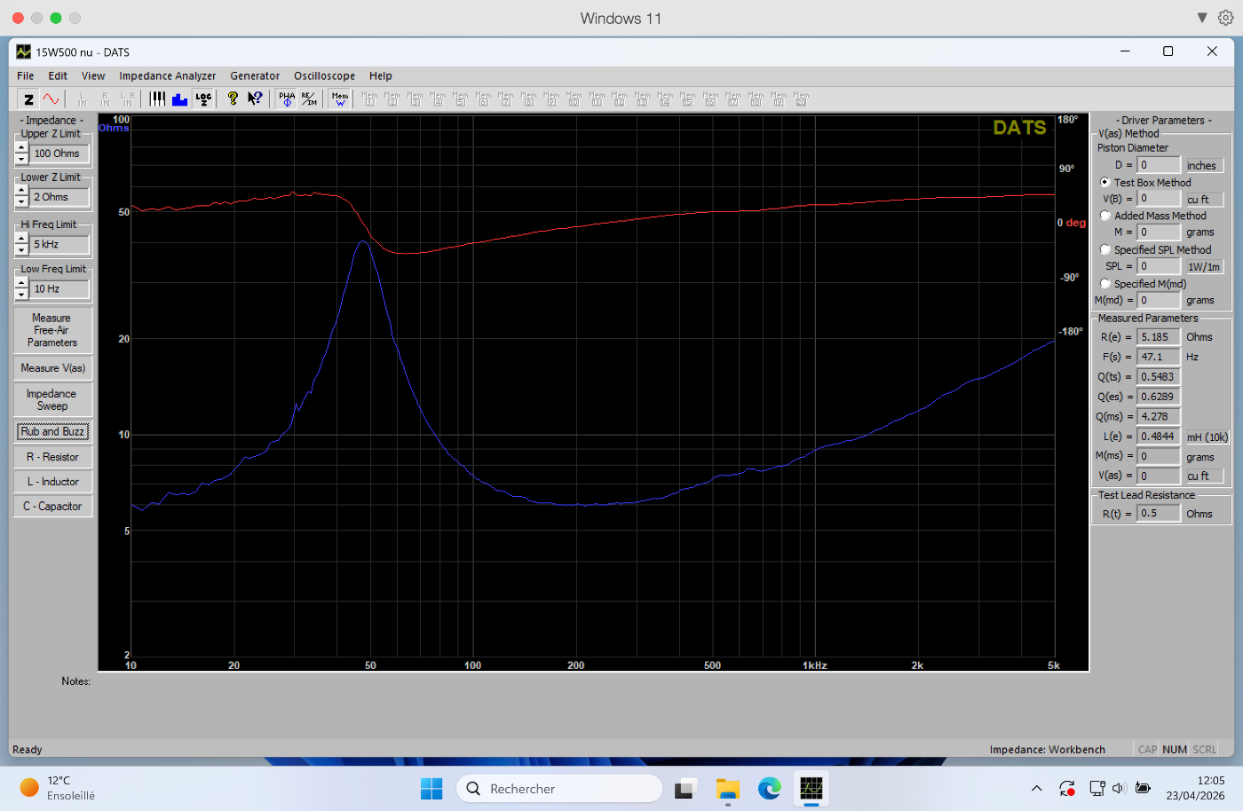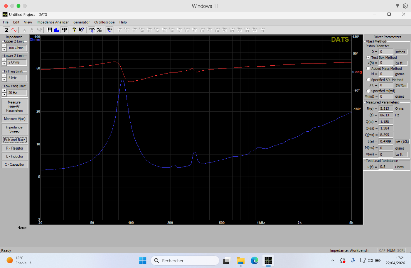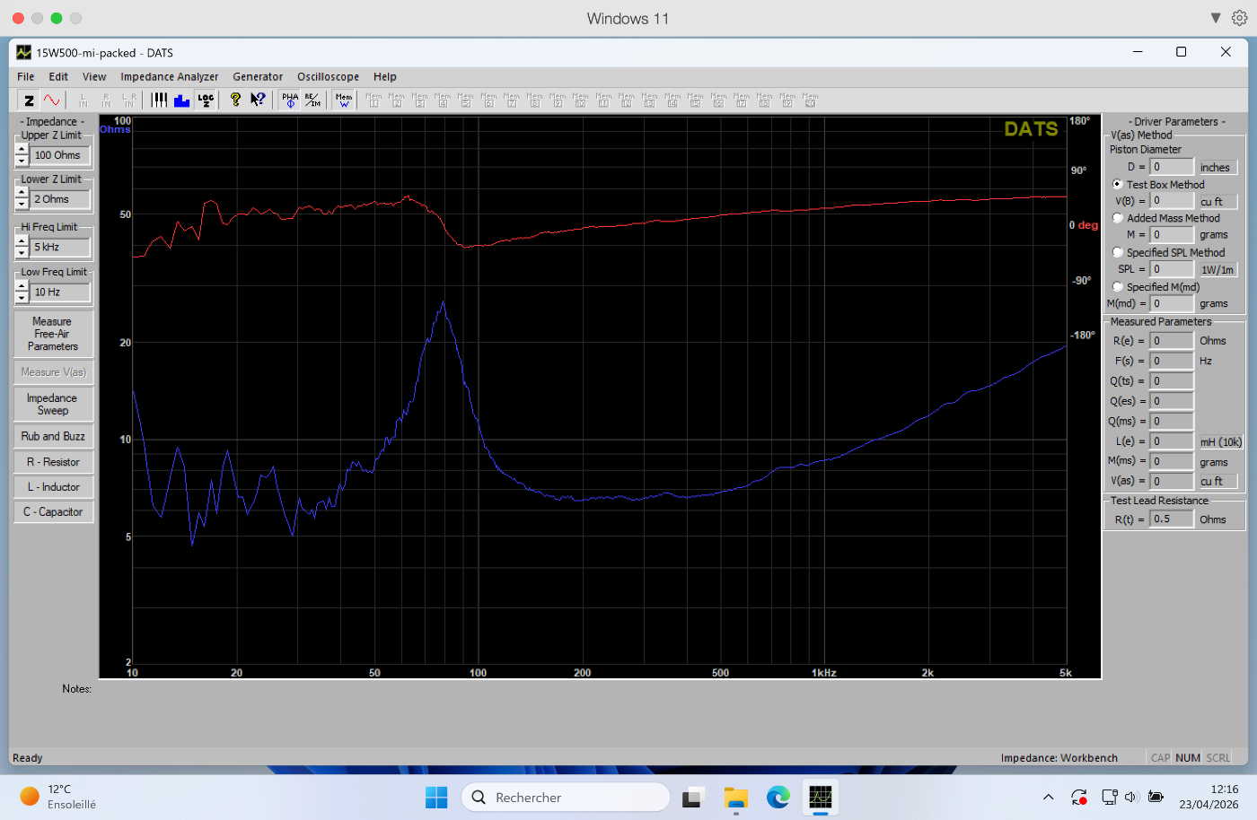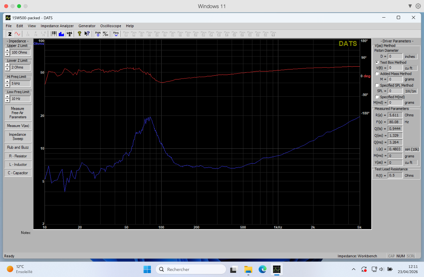 Et voila l’impédance, boite vide je précise, ca me fera une ref :