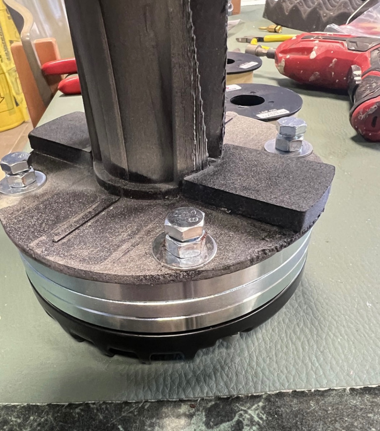 Deja je m’aperçois qu’il me faut de plus longs goujons pour la comp', j’ai mis un max de colle derriere l’embase du pav (par l’interieur) et ça va pas etre bien pratique a visser.