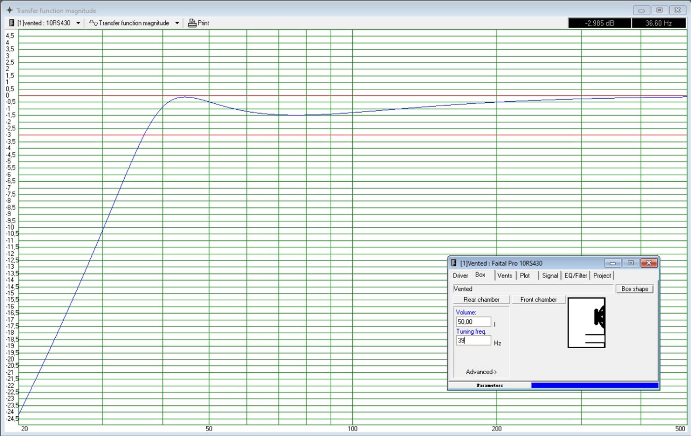 Accordé à 39 Hz, il est supposé présenter une f3 de 36,5 Hz environ.