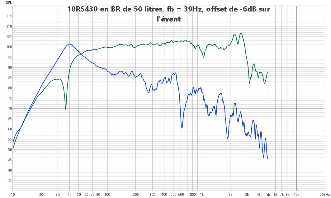 J'ai ensuite aligné "à la main" le niveau de l'évent (offset de -6dB) pour qu'il tangente la courbe du cône dans le bas du spectre.