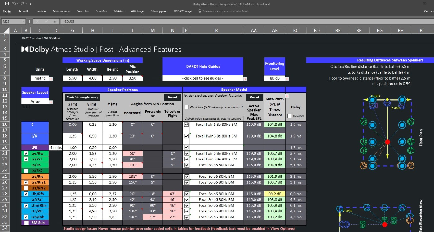 Pour la version Studio, Dolby a développé son propre outil de calculs sous Excel, beaucoup plus complet que le mien, moins visuel et interactif ; bref plus destiné aux pros.