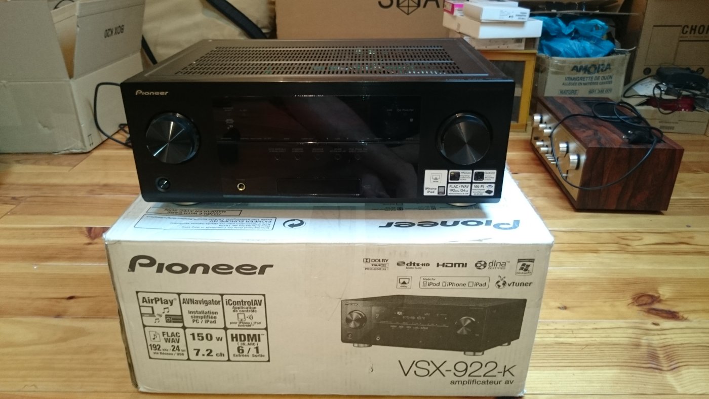 Je me mets donc activement à la recherche d'un ampli A/V au meilleur rapport prix performance possible. C'est ainsi que je commence à découvrir les différents forums spécialisés disponibles sur la toile. Le plus difficile au début a été d'apprendre et comprendre le langage plus ou moins technique de certains forumeurs pointus et expérimentés mais je crois que j'ai les deux pieds dedans maintenant puisque j'adore ça ! J'attends donc les soldes et me prends un petit Pioneer vsx-922 qui à l'époque reçoit toutes les louanges de la presse et des particuliers pour son rapport prix/performances/connectivité réseaux/etc.…