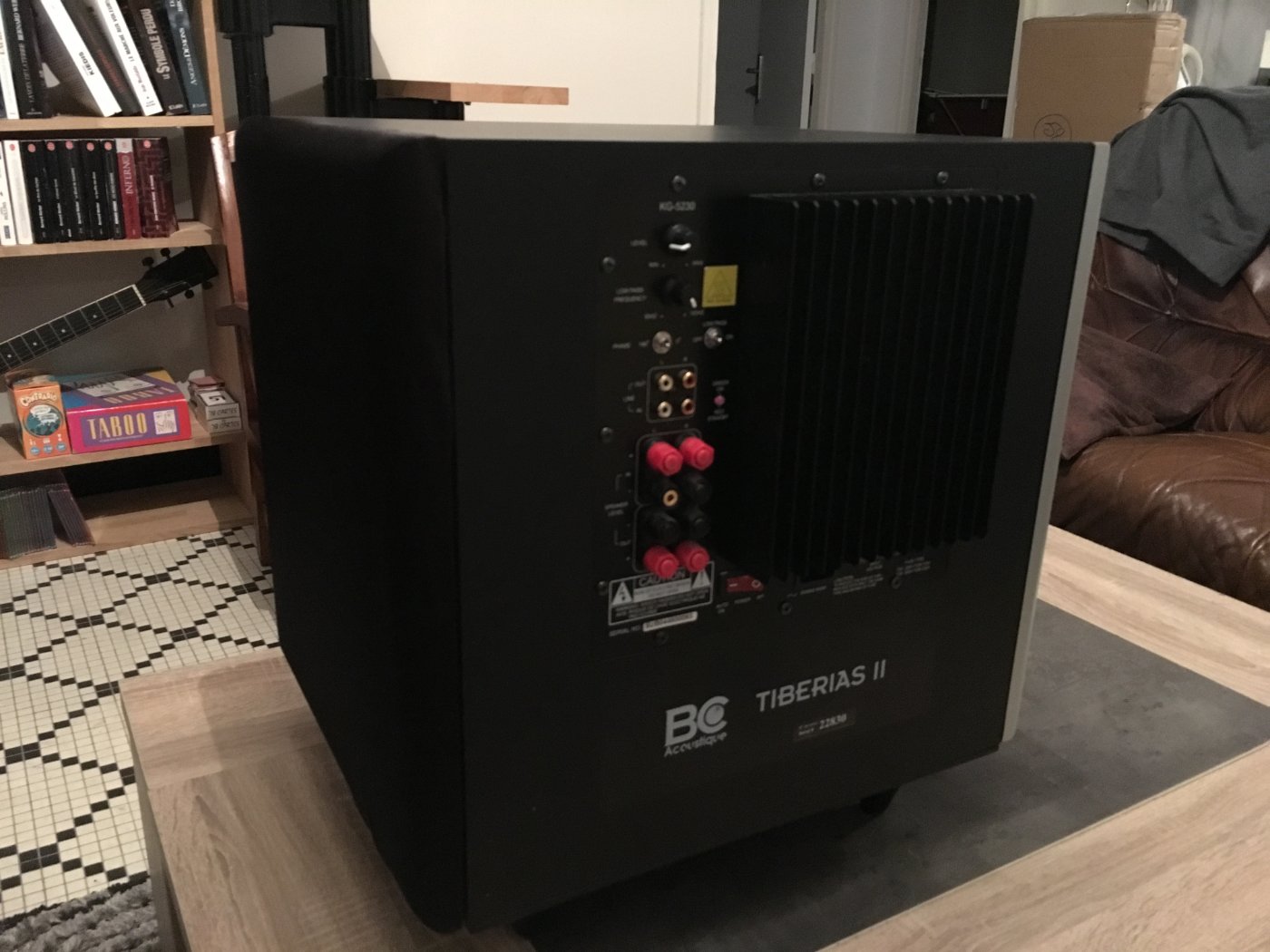 Branchement, test, placement, réglages, je commence à mieux maîtriser tout ça et je gère donc tout ça d’une meilleure façon. Au final c’est un peu plus propre mais ça tape moins que le Klipsch et j’arrive vite à le faire talonner. Le plus gros gain par rapport au KSW12 était au niveau de l’écoute musicale en 2.1 à niveau modéré, présent sans en faire trop et très percutant/sec, je précise encore une fois à niveau modéré ! Je me dis que je vais faire un petit bout de chemin avec le « METEOR » (j’adore les noms marketing comme ça). Et puis non j’ai à chaque séance de film ce petit truc qui me manque, qui me dérange. Sur un coup de tête et parce que se vend juste à côté de chez moi un caisson BC Acoustic Tiberias 2, je l’achète.