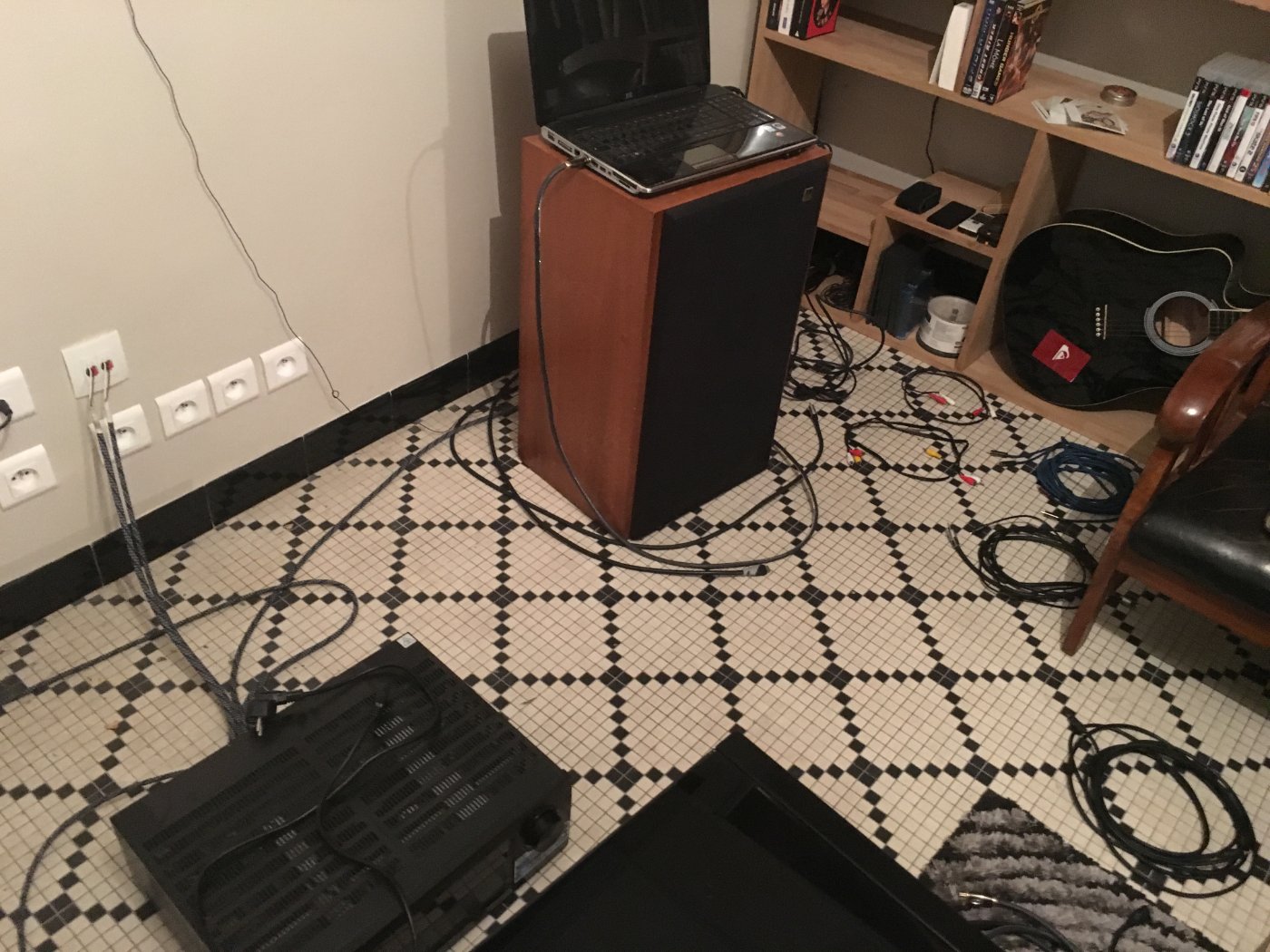 Résultat, c'est vrai que je perçois mieux les nuances dans les hauts médiums / aiguës, je passe donc par la phase de réglages Audyssey et ajustements manuels mais maintenant je maîtrise bien mon matos donc cela va plutôt vite. Cela ne transcende pas l'écoute mais il y a une amélioration notable donc ça restera comme cela tant que ça peut. Il faudrait aussi que je passe ma centrale sur le haut du meuble tv mais pour ça il va falloir que je fabrique un support tv donc on verra plus tard.