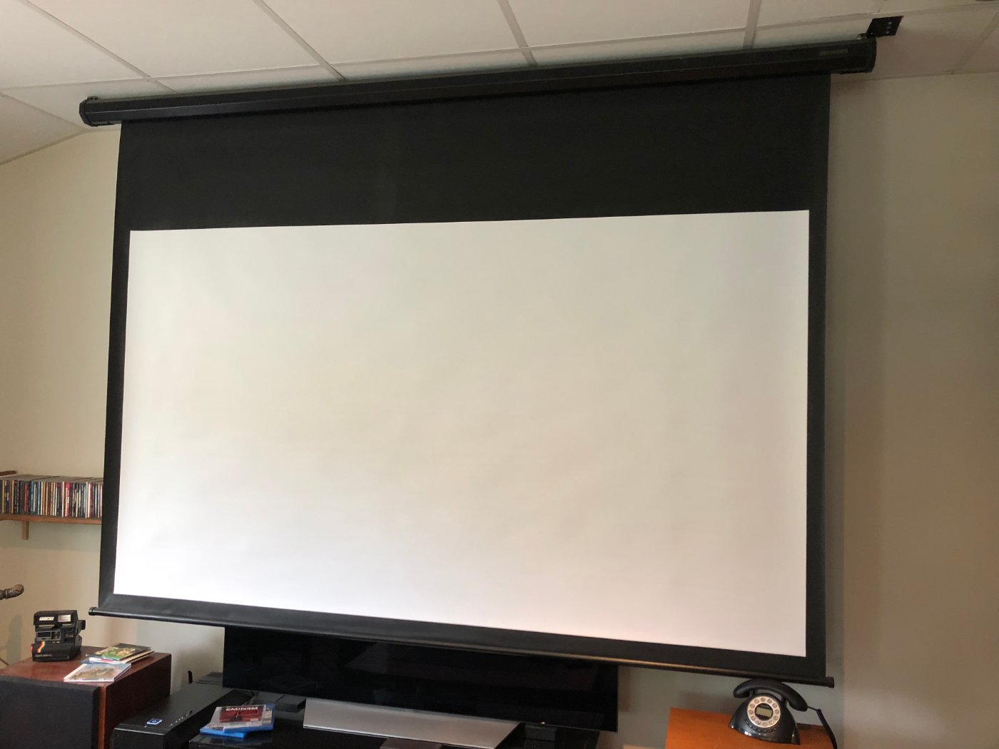 Je vais aller tout de suite à l'essentiel, de mon point de vue, c'est une bonne (très bonne ?) toile mais bien moins impressionnante que ce que l'on peut lire un peu partout sur le net, tout en sachant que mes précédentes toiles ont été un drap tendu sur un cadre en tasseaux (avec mon premier projo j'étais déjà content), une toile électrique grise sans nom à pas chère sur Amazon (horrible de rendu avec plein de paillettes), une toile blanche électrique sans nom à pas cher (rendu ok), une toile blanche manuelle Lumene (bon rendu).