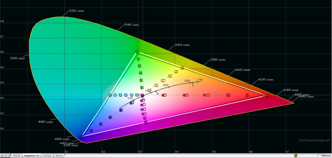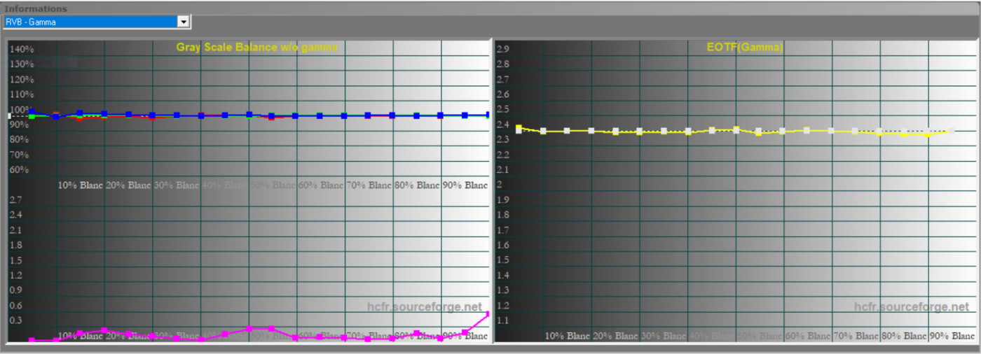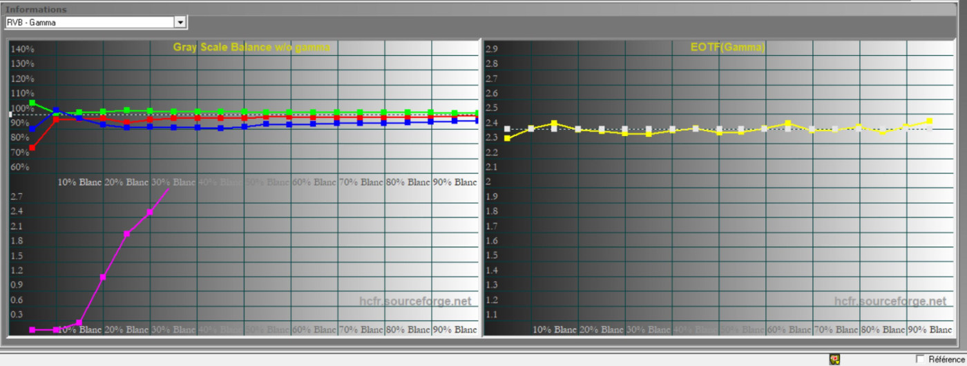 Spoiler : le calibrage n’a pas changé la donne, je n’ai pas pris une claque 🙂, mais par contre les mesures ont bien montré une dérive de l’équilibre du gamma avec un surplus de bleu et une température des couleurs trop froide (j’avais vu juste). Tout cela est revenu parfaitement dans les clous après le calibrage qui fut très simple car la dérive était linéaire.