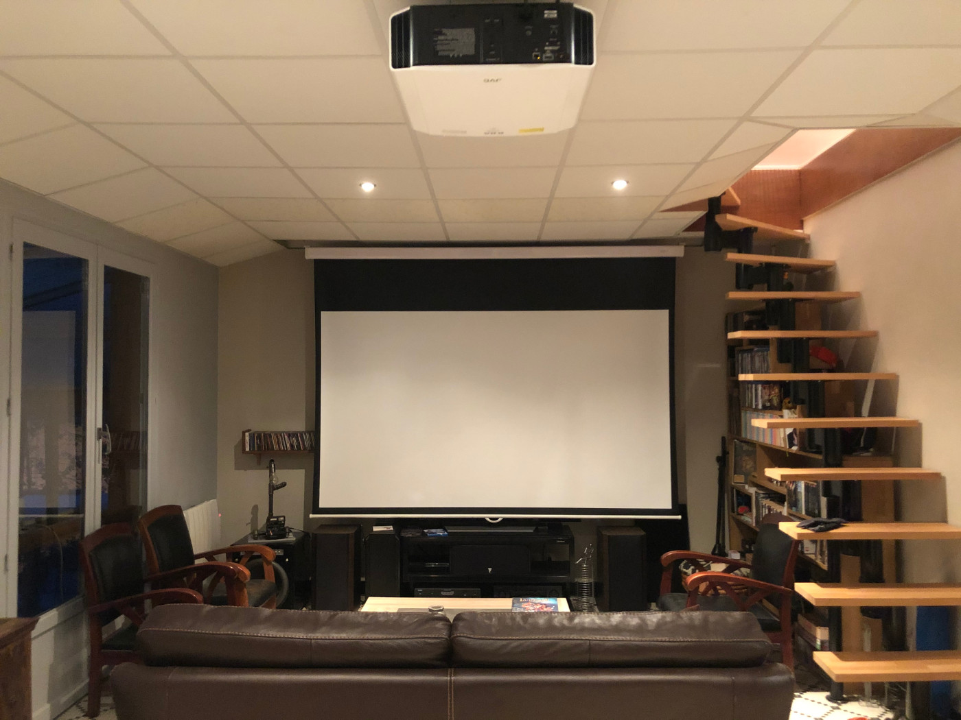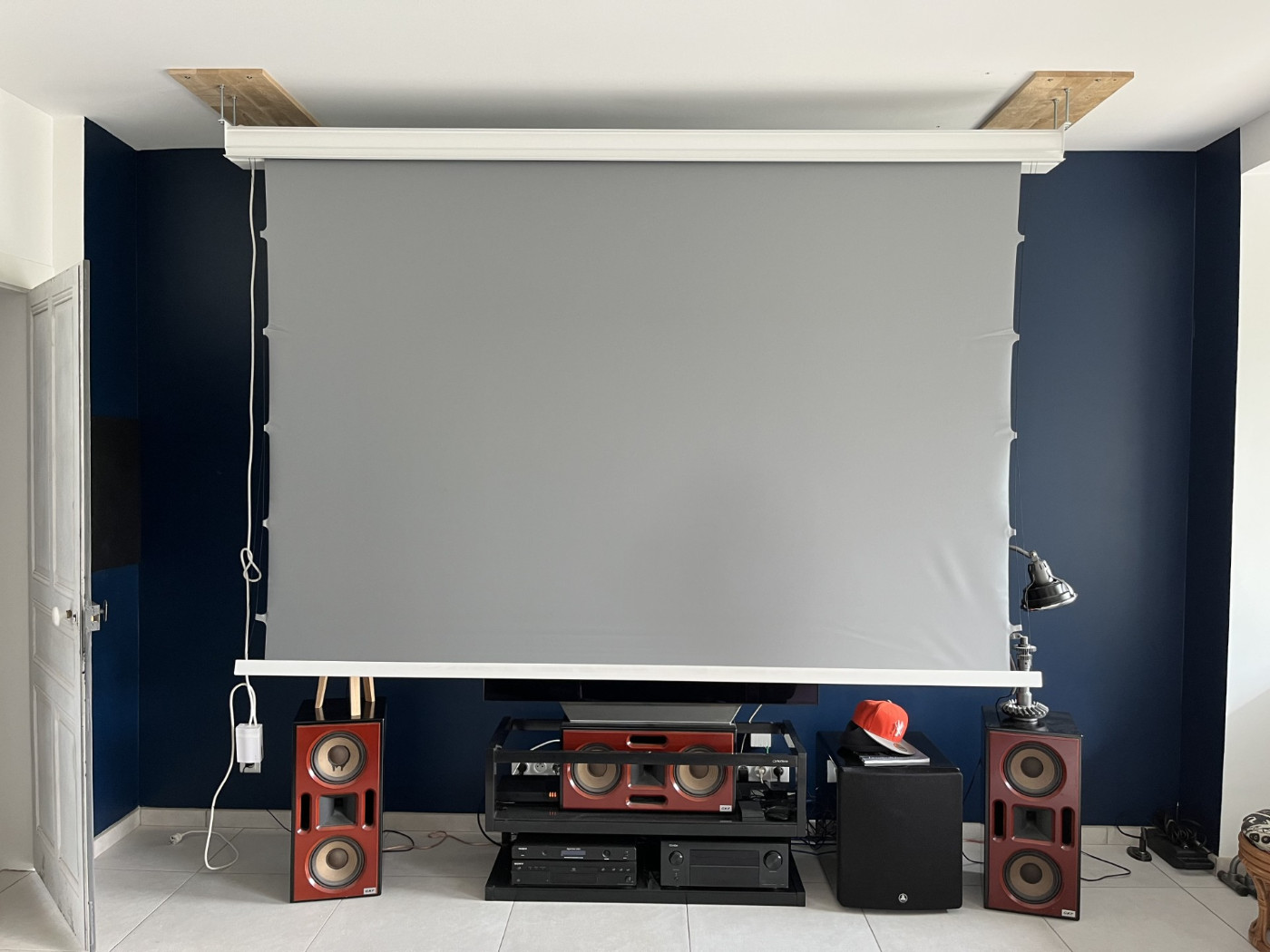 PS : Je n’ai pas eu le temps de me pencher sur un nouveau calibrage du projo avec cette toile et malgré le fait que la toile soit grise j’ai juste l’impression d’une image un peu plus froide sans que cela soit vraiment gênant. Peut-être que je prendrai une claque (comme décrit par d’autres personnes) une fois que cela sera fait, alors je ne manquerai pas de refaire un tour par ici pour vous tenir au courant du résultat.