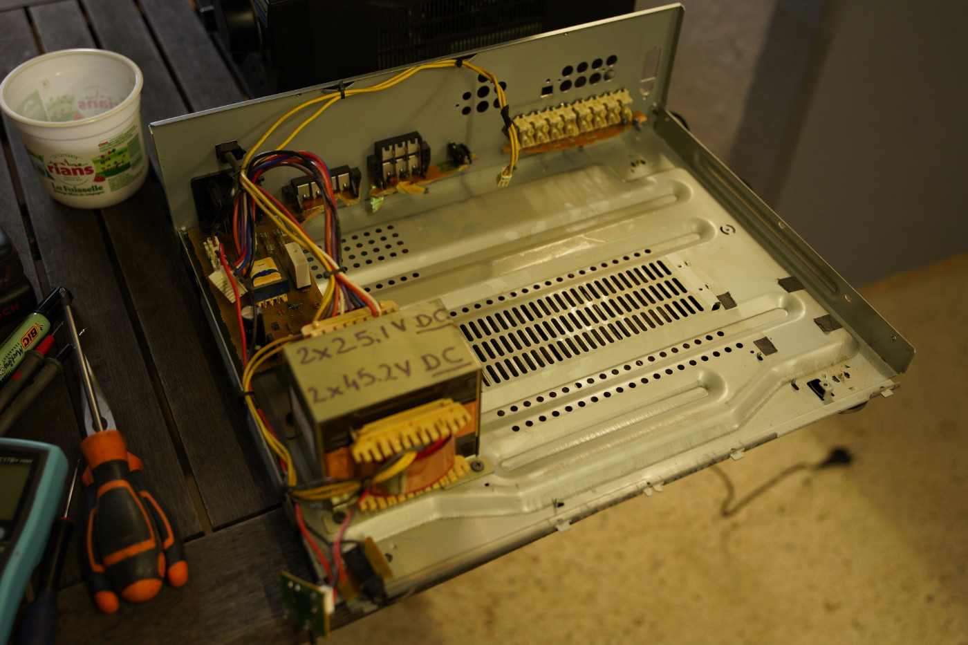 Toujours tester avant démontage, ça permet de connaitre les tensions des transfo, et si les transistors sont OK.