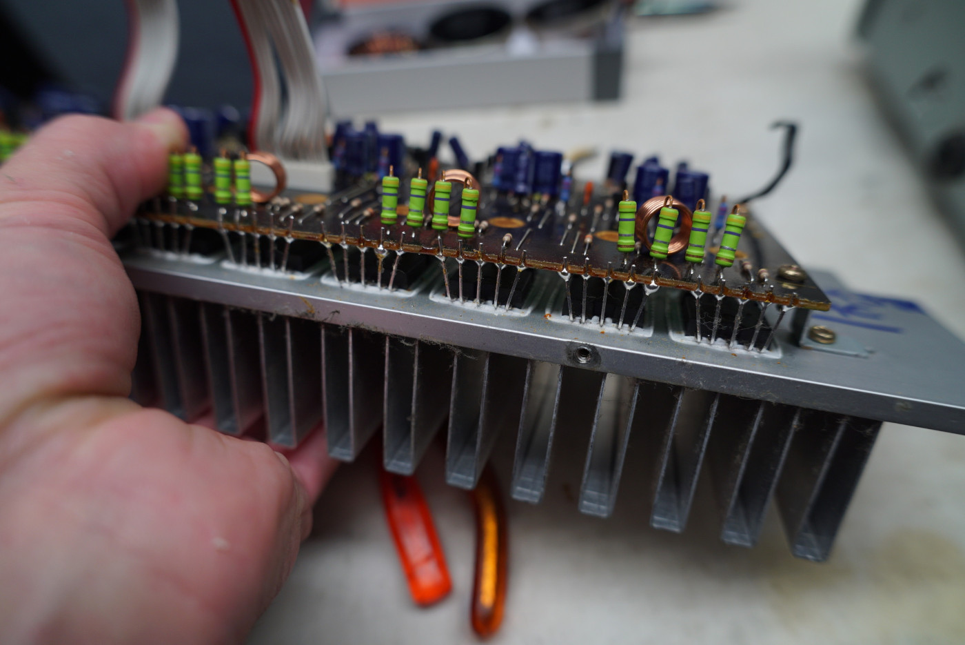 À la base c’est un intégré Sansui AU 417 dont j’ai viré tout ce qui ne m’intéressait pas (étage RIAA, et l’amplification), j’ai gardé l’alim que j’ai modifié et dont j’ai dessoudé tous les composants devenus inutiles sur la carte (relai de sortie pour les HP, etc.) et sur l’étage ligne j’ai changé pratiquement tous les condos par des polypro ainsi que certaines résistances par des 1 % métal mais je ne l’utilise pas, ça reste du vieux son dépassé, ça me permet juste de tester et parfois de réparer les platines CD des voisins, comme je n’écoute que du streaming je n’ai pas besoin de partie pré-ampli c’est PC > DAC > DSP > AMPLIS, pour les deux autres systèmes c’est toujours du multi-amplifié mais différent.