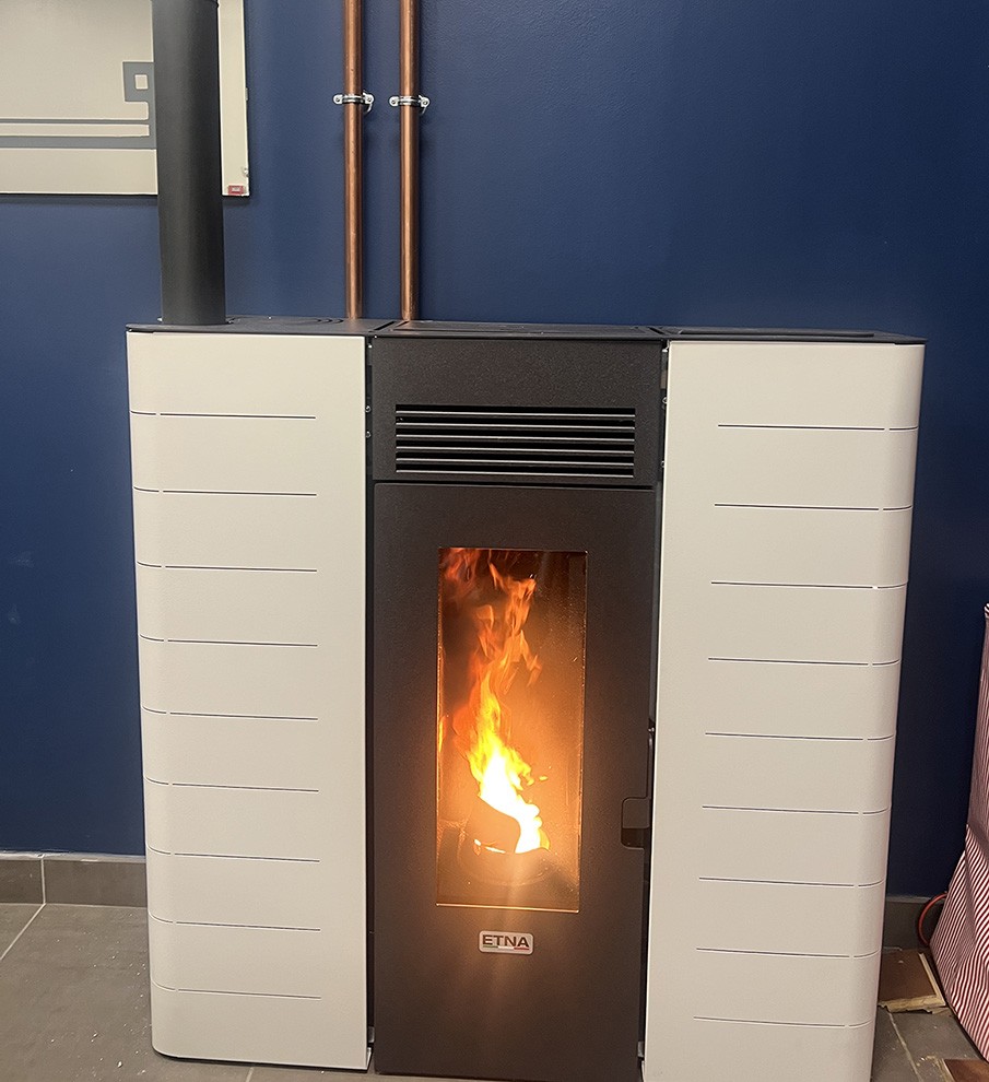Pour les jours rouges et même de nombreux autres, mon choix s'est porté sur un poêle à pellets Hydro d'une puissance totale de 16kW, 12,8kW sur mon réseau de radiateurs déjà en place (le chaffauge était historiquement au gaz de ville) et 3kW par convection, ceci à puissance maximale. Ce poêle est très performant et affiche plus de 98% de rendement (je ne sais pas comment mesurer ce point)