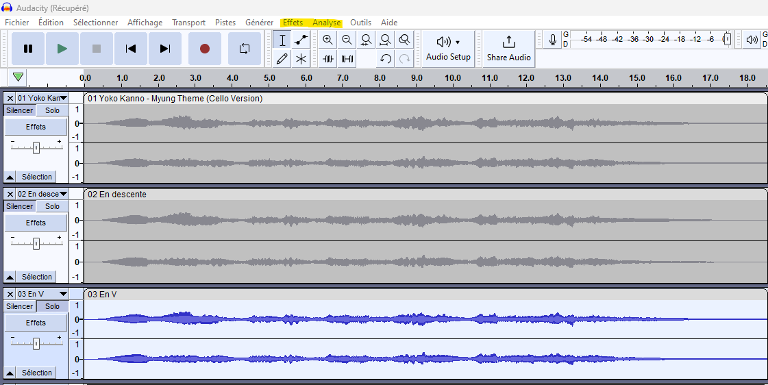 Vous pouvez pour égaliser les niveaux avant comparaison. Dans Audacity, faire les manipulations suivantes :