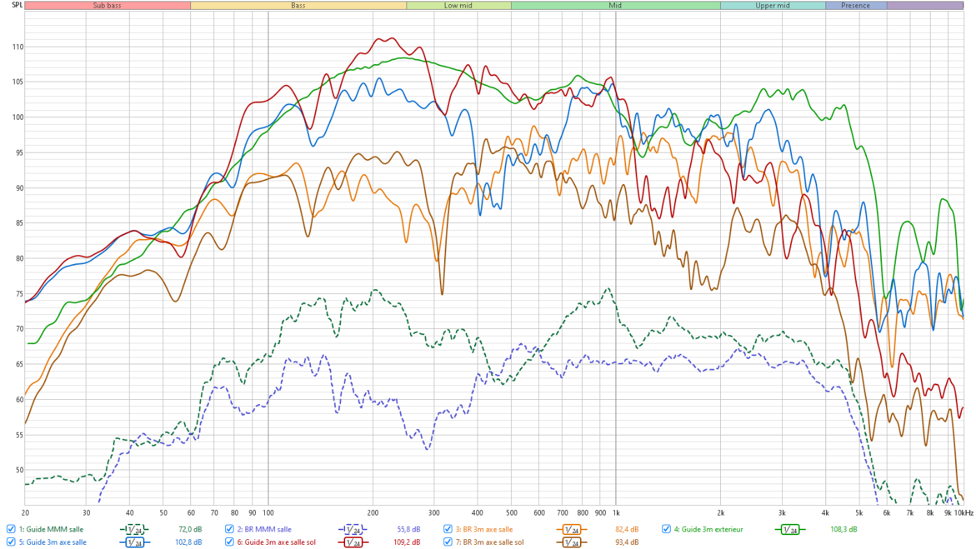 En salle avec le guide d'onde, c'est +5dB à 80Hz, +7dB à 100Hz, ça monte à +15dB entre 200 et 300Hz :shock: . Ensuite, il y a une perte d'efficacité entre 400 et 700Hz qui nécessite une investigation car elle ne se retrouve pas à l'extérieur.