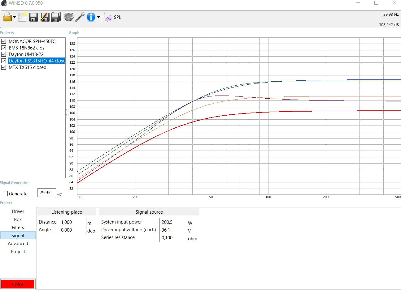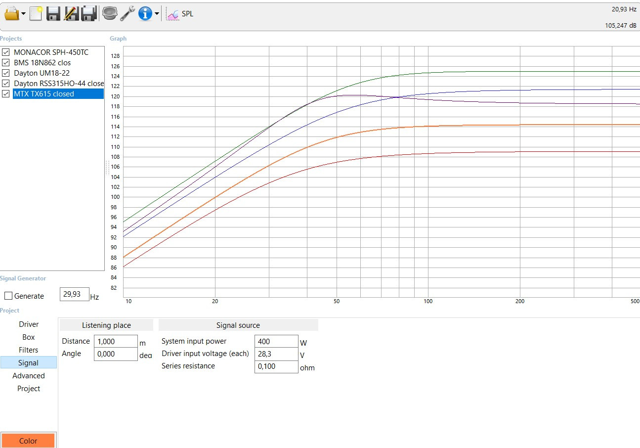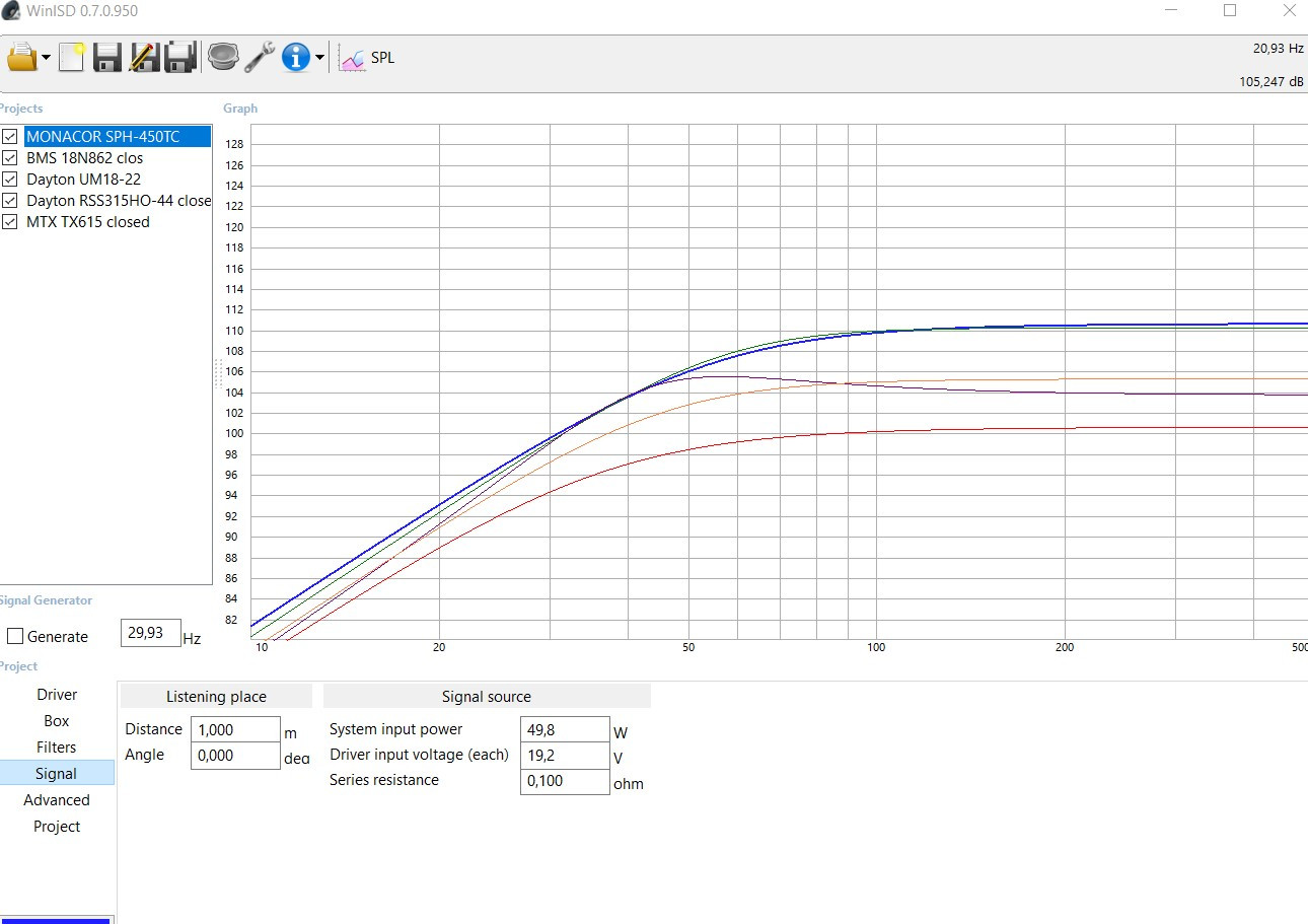 Tu verras par exemple que l'écart se réduit entre le 450TC ou le BMS et le Dayton, mais pour un sub 20-60 Hz, l'UM18 est imbattable, normal, il n'est fait que pour ça et rien d'autre . :wink