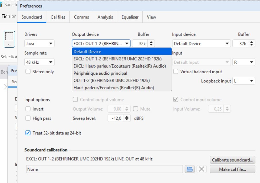 dans ma galère de mesures, paramétrage de Rew etc, je suis reparti d'un windows propre, avec installation du driver de ma behringer UMC202hd + rew. Pc portable dédié à la mesure pour l'instant.