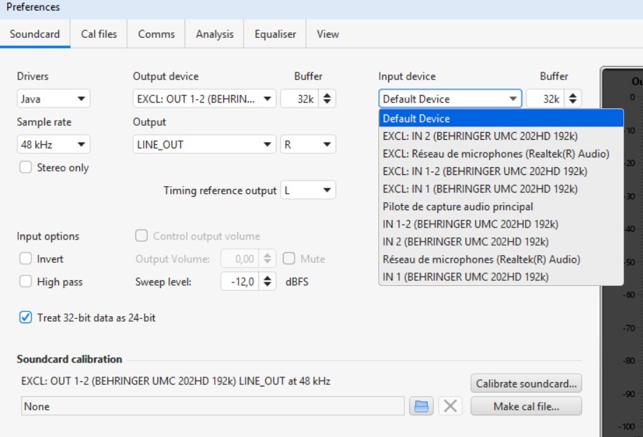 j'ai suivi mais déjà en distortion avec ma umc202hd, le modèle en dessous de ta carte son behringer, je suis haut en distorsion, à 0.4%