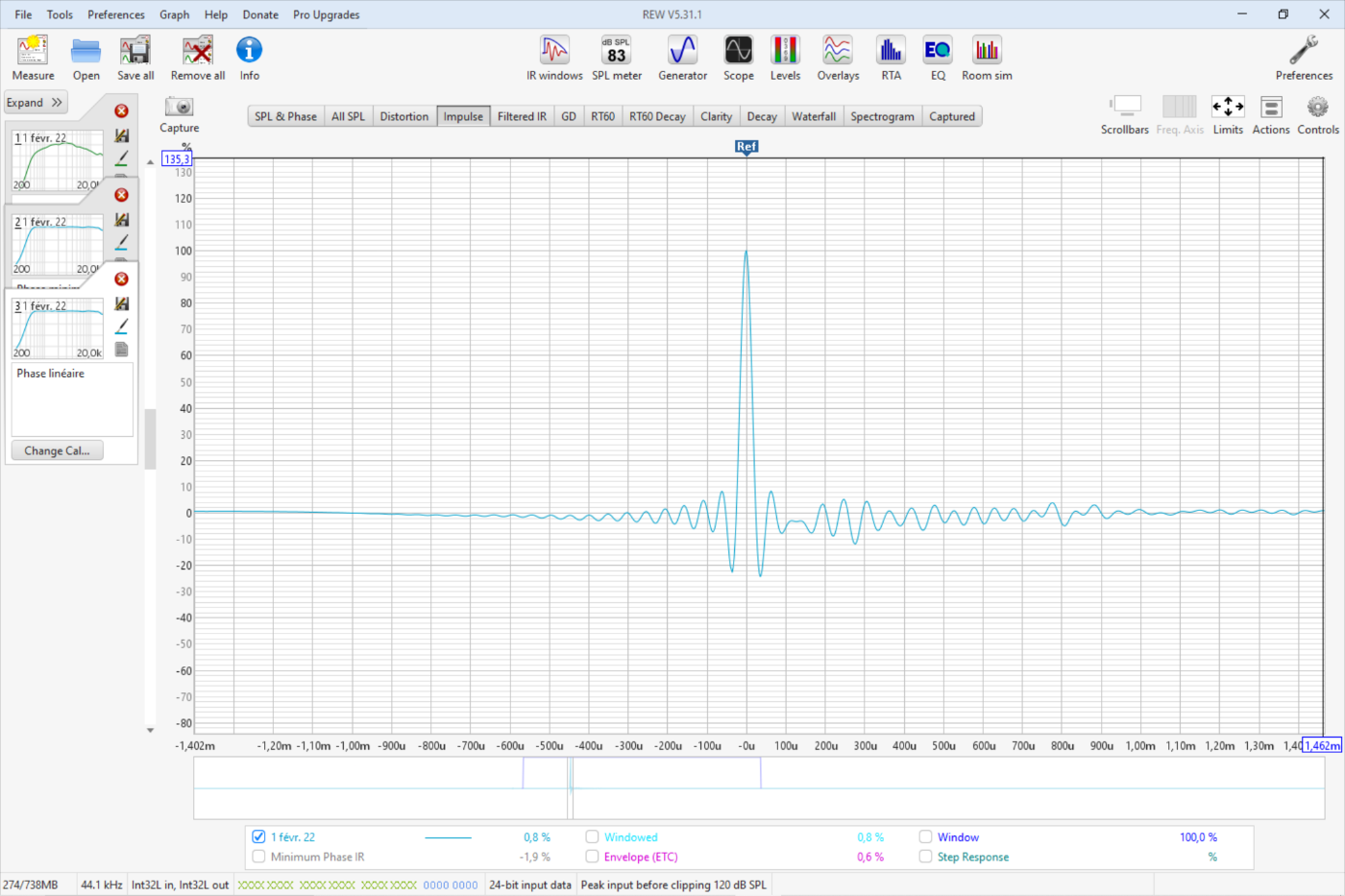 Dans le premier message du sujet, j'ai illustré les réponses impulsionnelles d'une correction à phase minimale et d'une correction à phase linéaire. Celle de la phase linéaire montre une absence totale de signal avant l'impulsion.