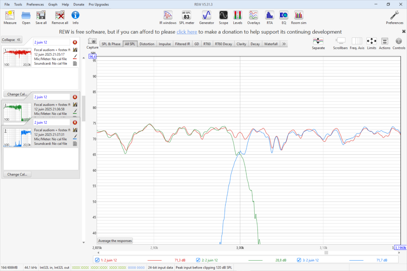 Pour le fenêtrage, c'est simple, on met au point une enceinte, l'enceinte c'est du champs direct. On est pas censé intégré la salle tout de suite, et surtout pas pour un filtre a 3KHz ! notre système auditif sais faire la différence entre le champs direct et ce que renvoie la salle, sous certaines conditions, passé l'effet de fusion... mieux vaux éviter d'intégrer les diverses réflexions afin d'avoir une mesure valide.