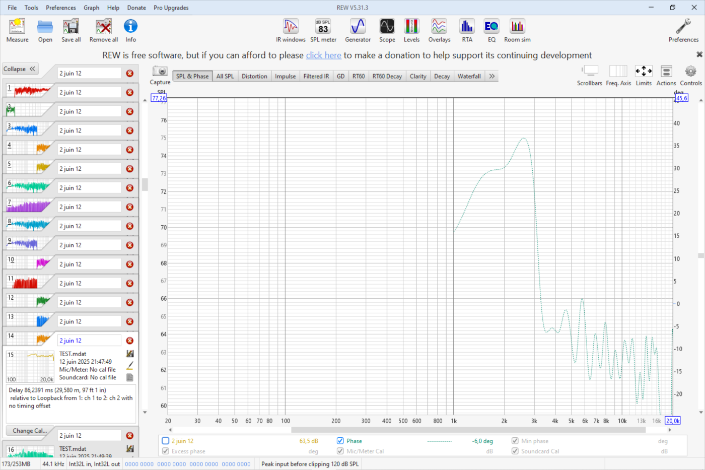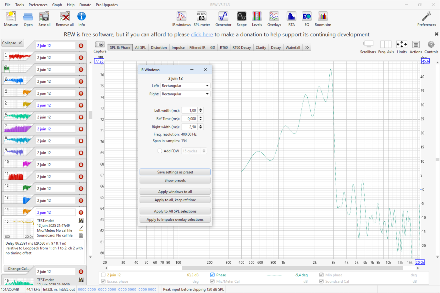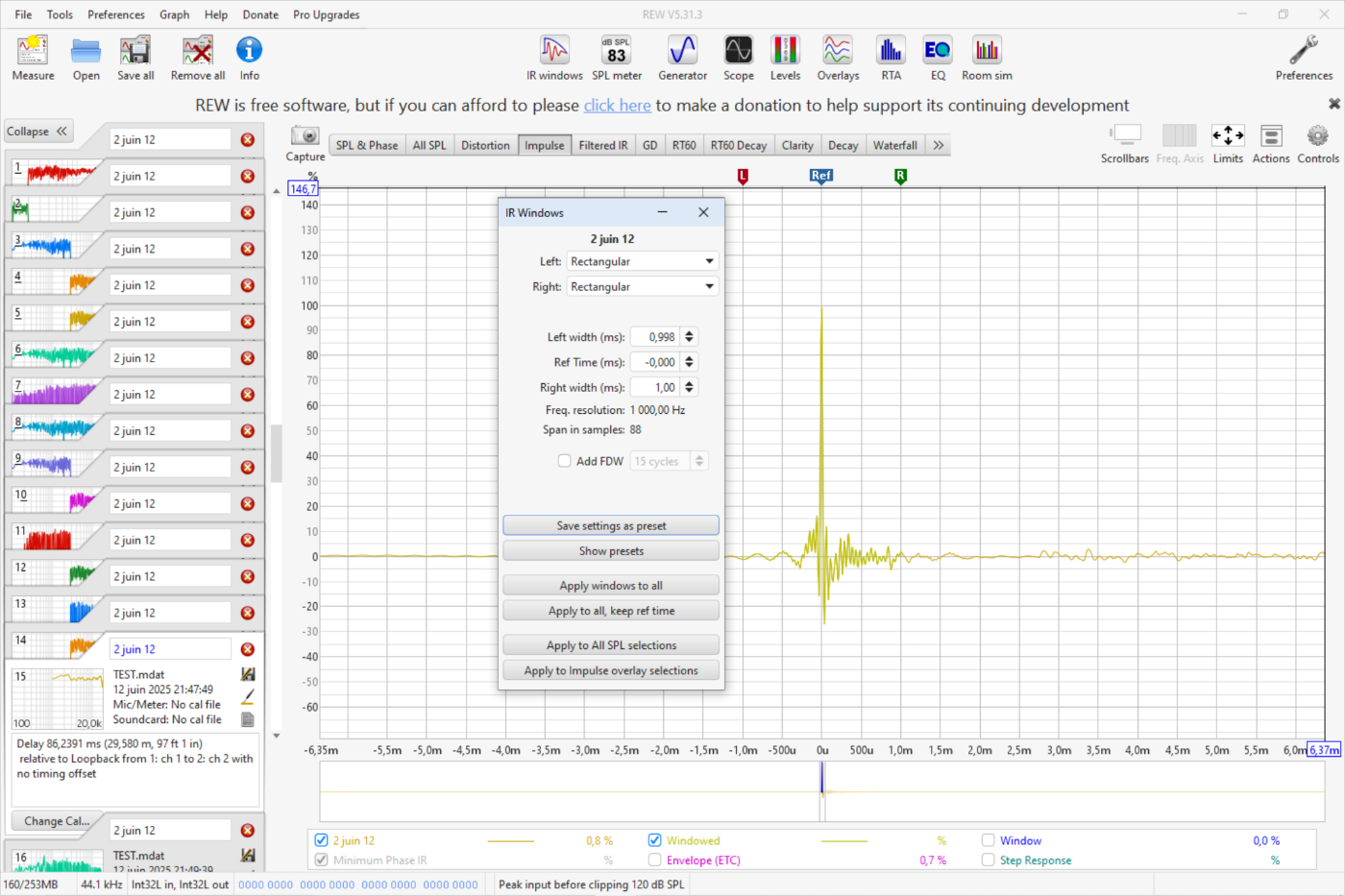 Ah oui j'utilise bien le "use loopback as timing reference". D'ailleurs, faut-il mieux utiliser "use loopback as cal and timing reference"? C'est pour aligner les pics des impulsions car, dans mon cas, j'ai filtré en brick wall. Je me mets dans l'axe de l'aigu, et j'applique un délai.