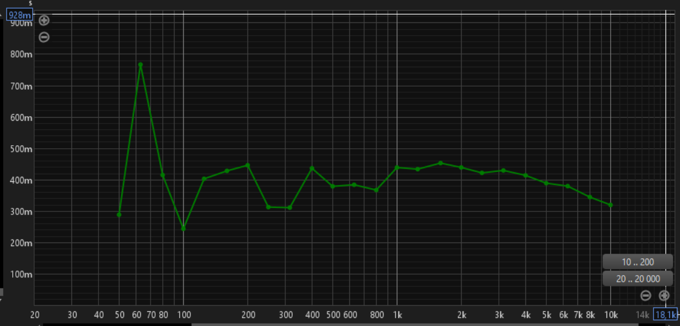 De plus, la courbe Topt est montante dans l'aigu (mix entre le RT20 et le RT30, ici sur l'un des 9 points de mesure de l'enceinte gauche seule). Cela peut jouer sur le fait que je préfère un équilibre assez tourné vers l'aigu, probablement plus naturel dans un tel environnement.