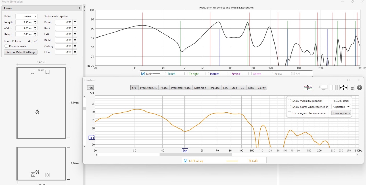 La perte de sensation physique vient d'une réduction des pics de la courbe de réponse. Bien souvent on lisse la courbe de réponse, de sorte que quand on n'a pas de modes, la courbe affichée représente le niveau réel, mais quand on a des modes, la courbe affichée les lisse et représente un niveau inférieur à la réalité.