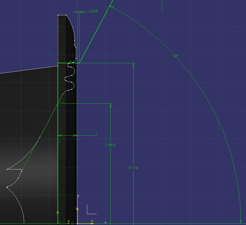Le WG est conique sur 2/3 de la hauteur (30mm), puis j'ai un rayon de courbure bien smooth qui va jusqu'à 270mm de diamètre. Les bords a 300 sont aussi rayonnés en ellipse.