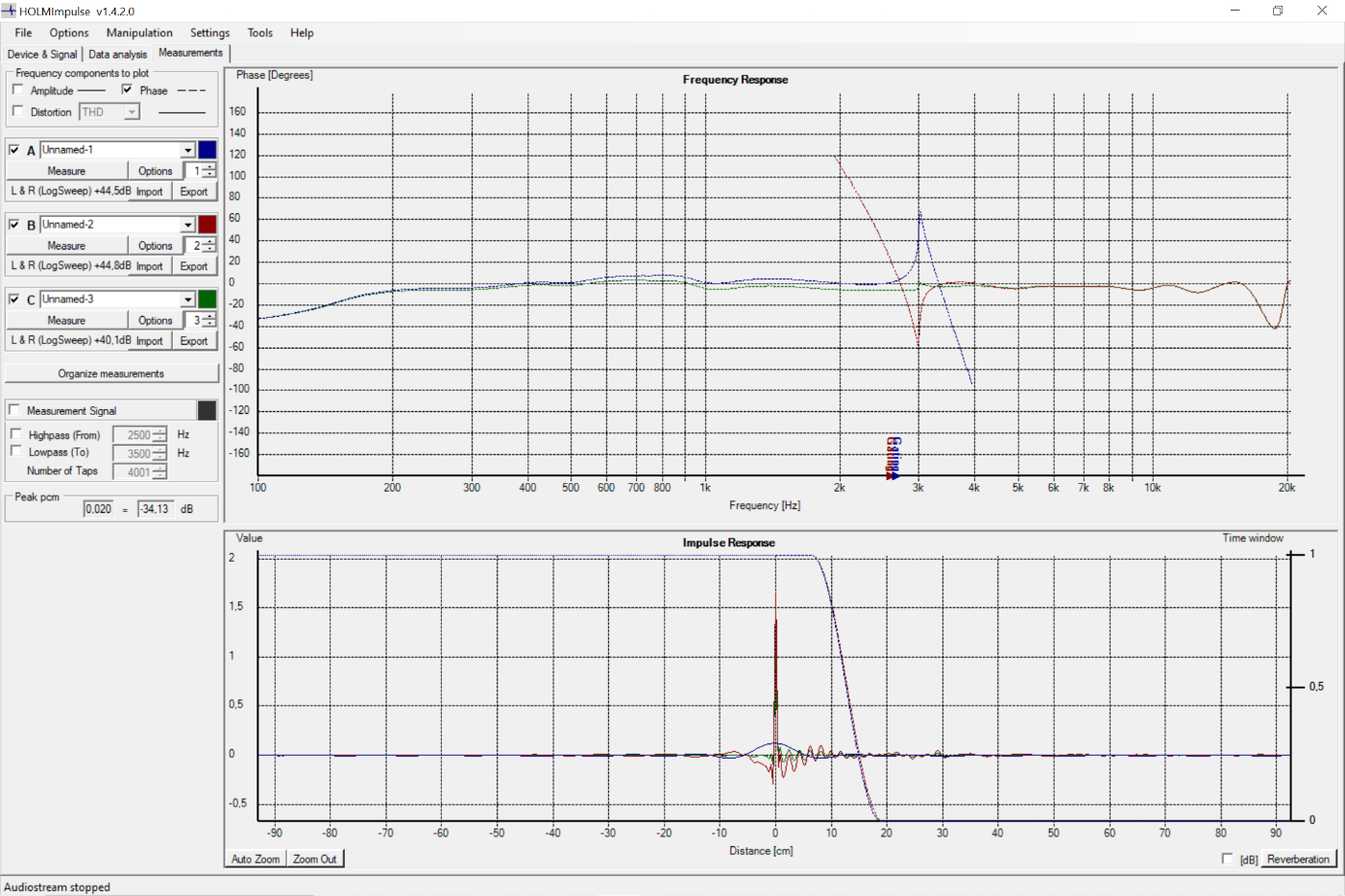 Une fois le estimate IR delay fait sur l'aigu, j'applique le même délai sur le grave (voir les vidéos).