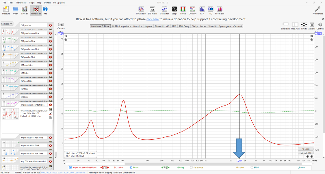 J'ai effectué les mesures dans mon salon dans l'axe du tweeter. J'ai assuré l'équidistance entre le sol et le plafond mais je n'avais pas fait attention à deux étagère qui m'ont engendré les premiers accidents sur la courbe d'impulsion. Comme je n'avais pas possibilité de déplacer l'enceinte j'ai effectué les mesures à 60cms qui représente un peu plus de 3 fois la largeur de l'enceinte. Je vais faire des nouvelles mesures à 1 mètre pour lever le doute.Dagda a écrit : ↑03 janv. 2025, 16:10 Tu mesurais dans ta pièce ?