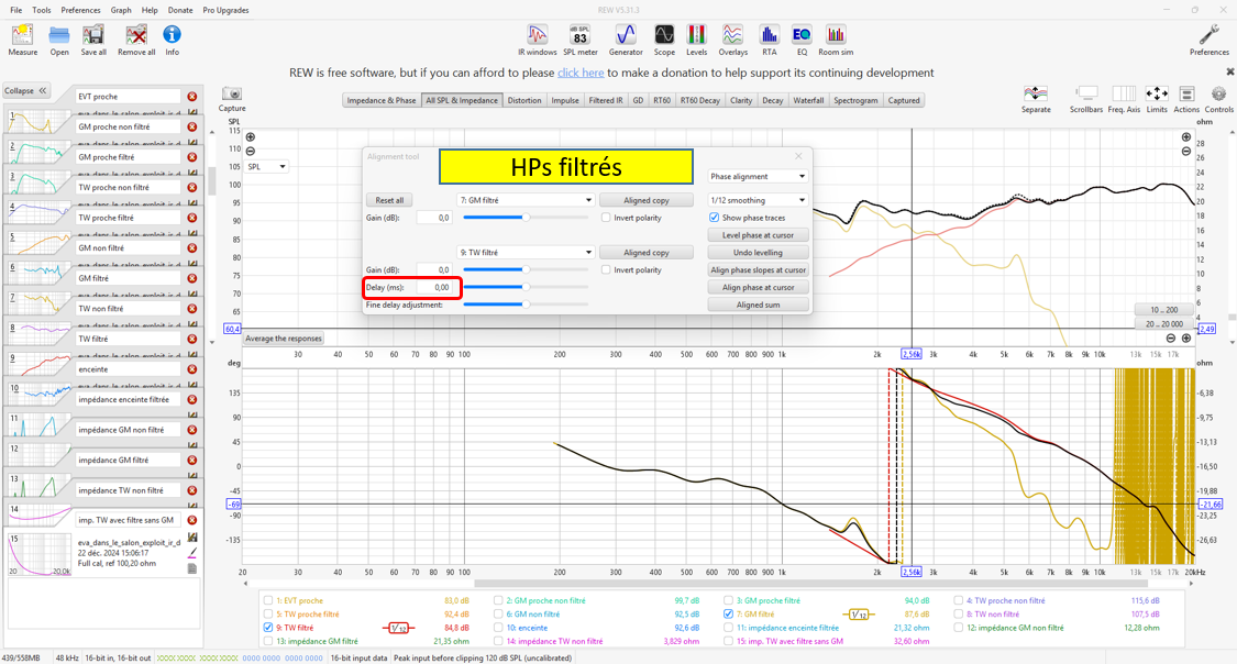 Alignement tool ne semble pas être vraiment pertinent pour aligner les HP dans le sens où la phase bouge avec la mise en place du filtrage (actif ou passif).