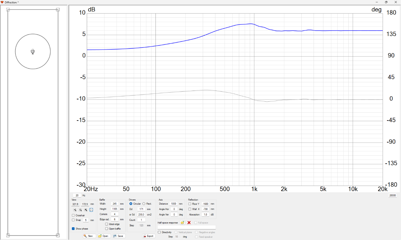 Si on prends la simulation de ton effet de baffle, on va considérer qu'un haut-parleur à la base parfaitement linéaire, aura cette forme de courbe de réponse ine fine dans l'enceinte.
