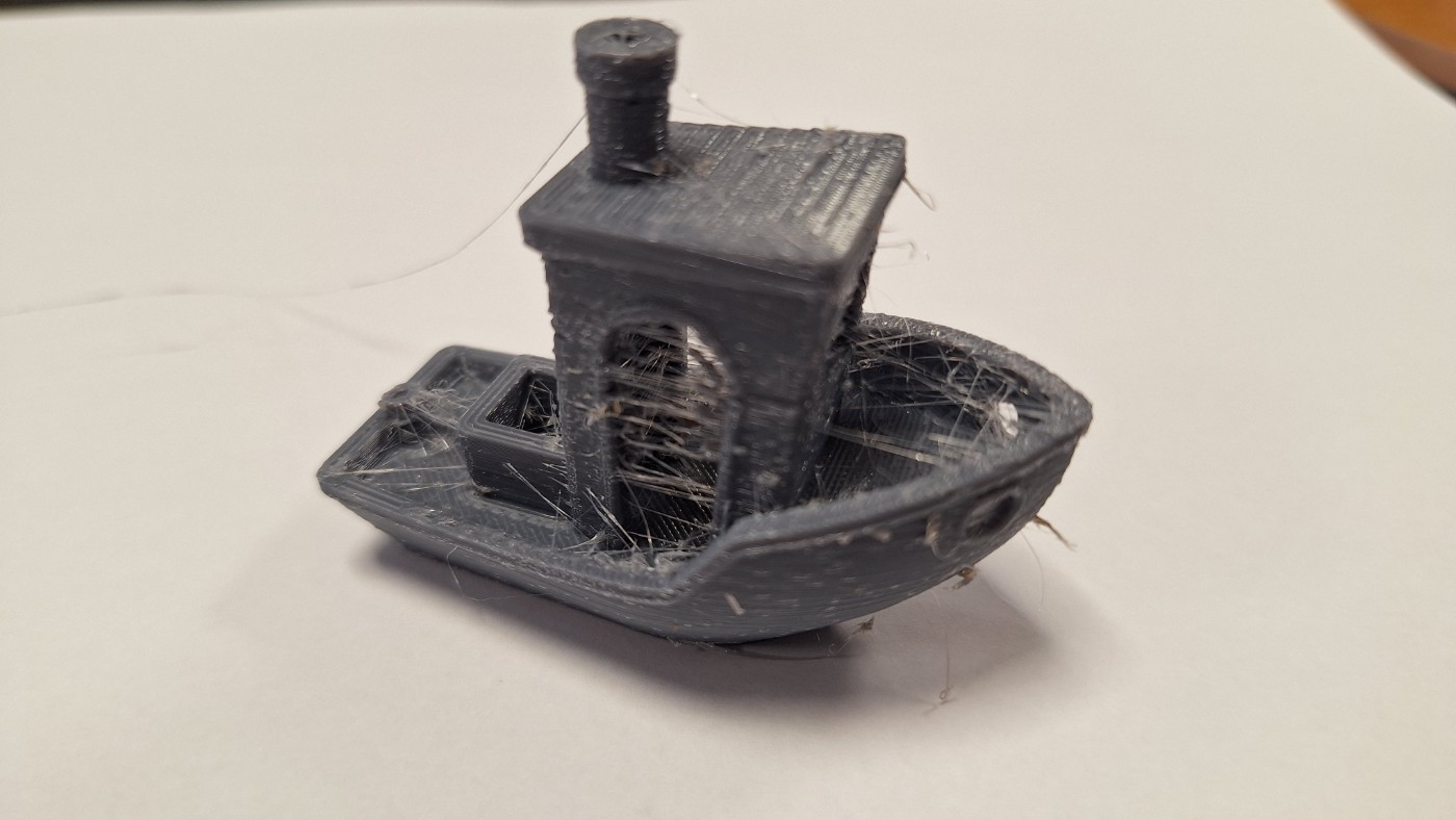 C'est la première fois en PETG sur cette imprimante (j'en imprime des km au boulot sur une CR10), et je ne comprends pas pourquoi. J'ai l'impression que le débit est trop fort, alors j'ai fait un test, mais très vite (genre vers 95%), les parois ne sont plus jointives. J'ai fait une tour de température, ça change rien entre 220°C et 250°C, j'ai réduit la vitesse d'impression, rien, j'ai démonté toute la tête, c'est nickel dedans. Reste la buse à changer ...