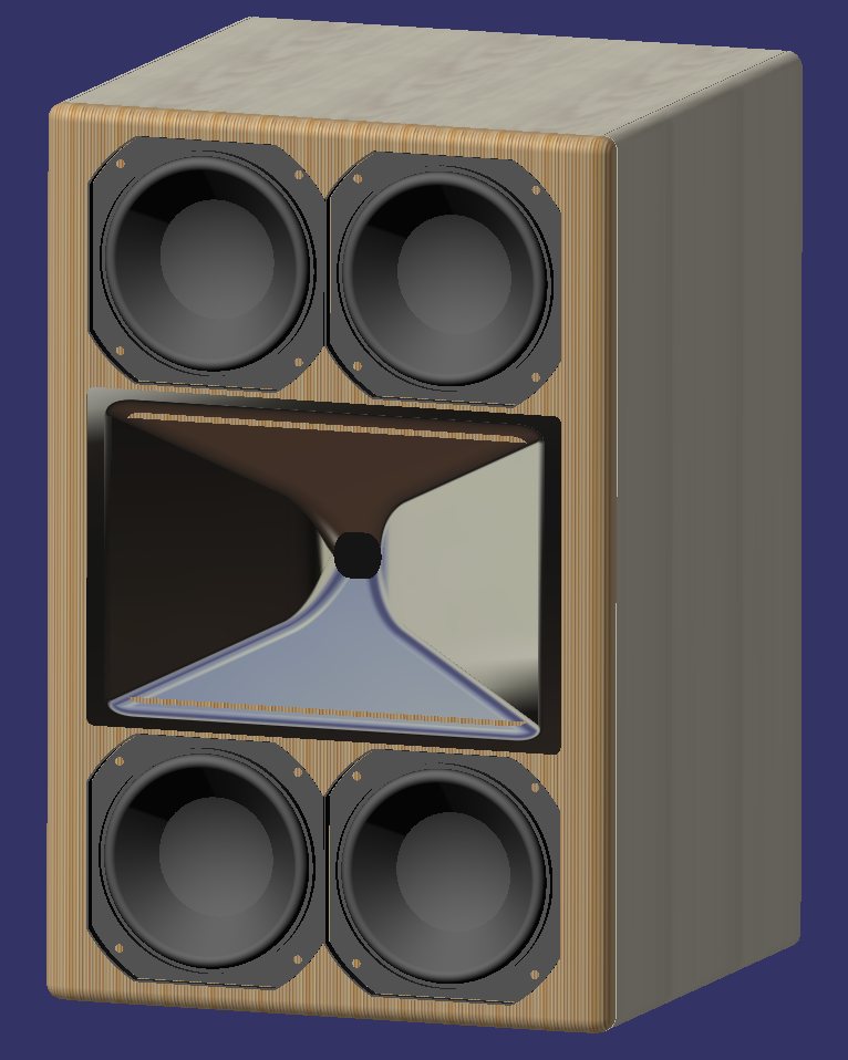 Si tu veux une directivitée vertical et horizontal marquée on retombe sur ce que j'ai dis dans l'autre topic mais cette fois au lieu de 2 5FE tu en met 4 qui forme un carré serré, le pav est au dessus, ce n'est pas un MTM, par contre ça imposte une coupure bien plus basse, compression et X25 ou 28.