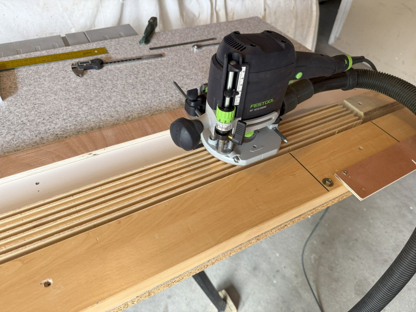 L’empilement de mdf fut un temps dans mes projets. Puis lors des premiers essais j’ai utilisé des tasseaux rabotés dans lesquels je faisais les rainures à la scie sur table (fastidieux car toutes les côtes étaient à 0.2mm près).