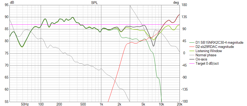 Là de prime abord je dirais que le tweeter est trop atténué et que les pentes de filtrages électrique sont trop forte avec un mauvais chevauchement.