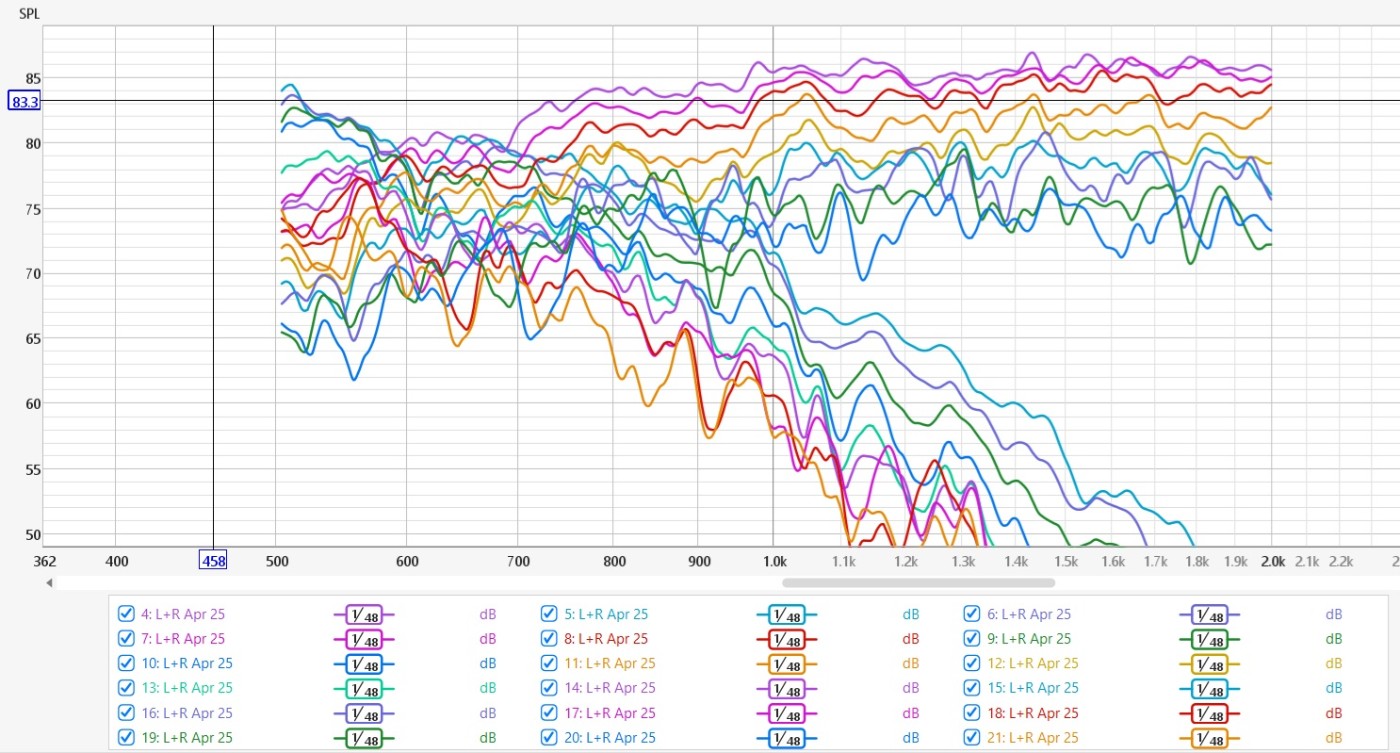Tu as du confondre à cause de ça. Tu peux faire des mesures a 2cm du cone a des fin de R&D ou de démonstration mais ça ne reflète en aucun cas le SPL réel en terme d'allure, même en disto on a des mesures à 20 ou 31.5cm (HifiCompas), si possible EQ flat (c'est là que le bât blesse..), et on envois le SPL.